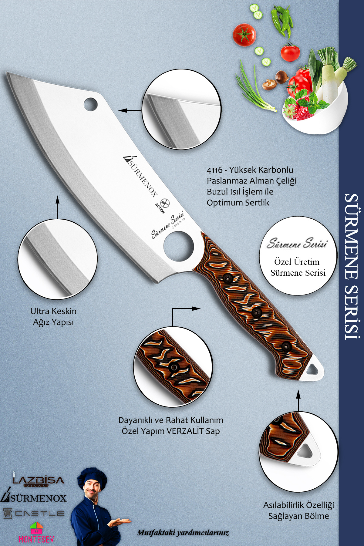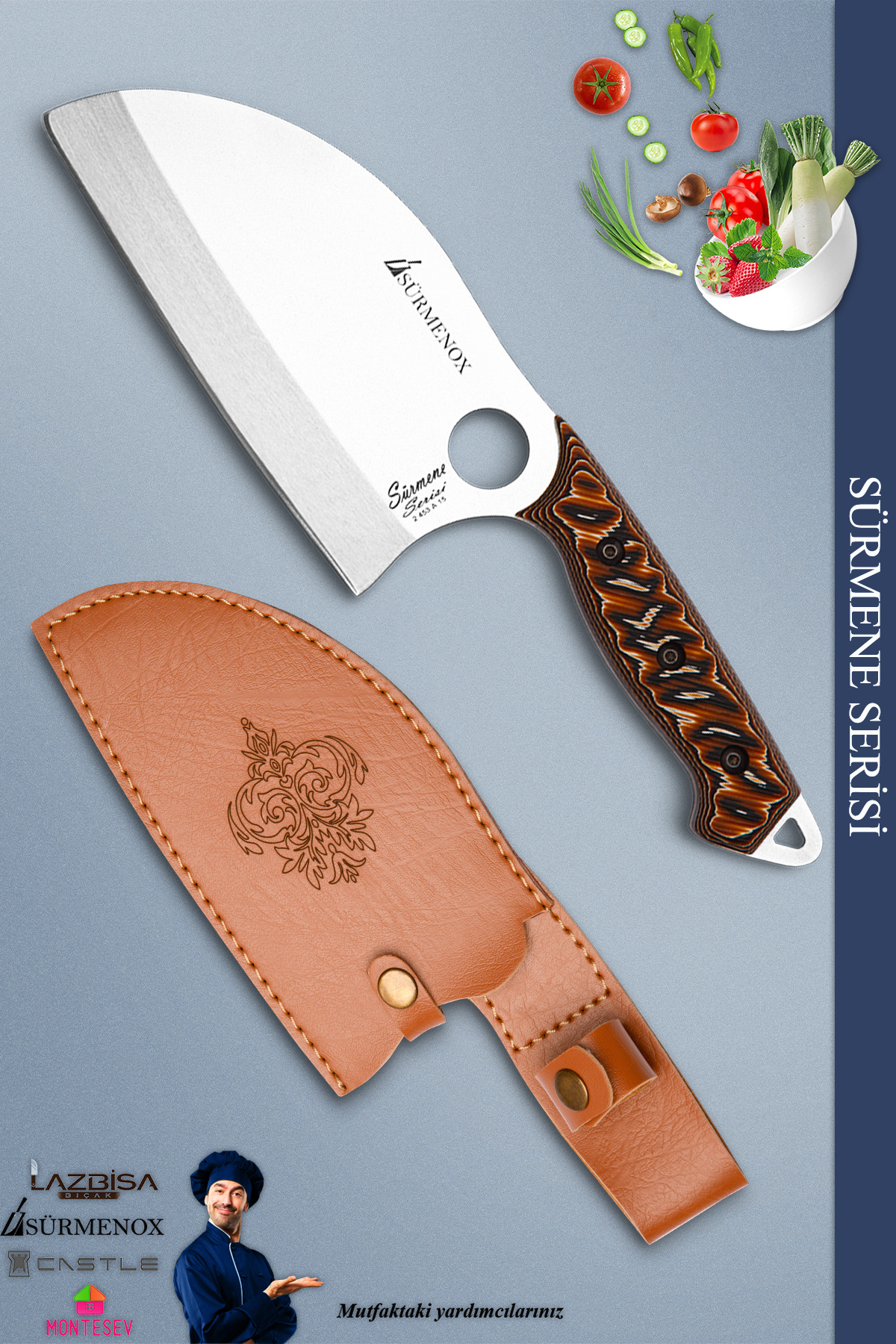 Sürmene Serisi Outdoor Bıçak Kamp Bıçağı Mutfak Şef Bıçak Bıçağı Deri Kılıflı Kahverengi (OUT-03) Sürmene Serisi Outdoor Bıçak Kamp Bıçağı Mutfak Şef Bıçak Bıçağı Deri Kılıflı Kahverengi (OUT-03) SrmOut3 تک سایز
