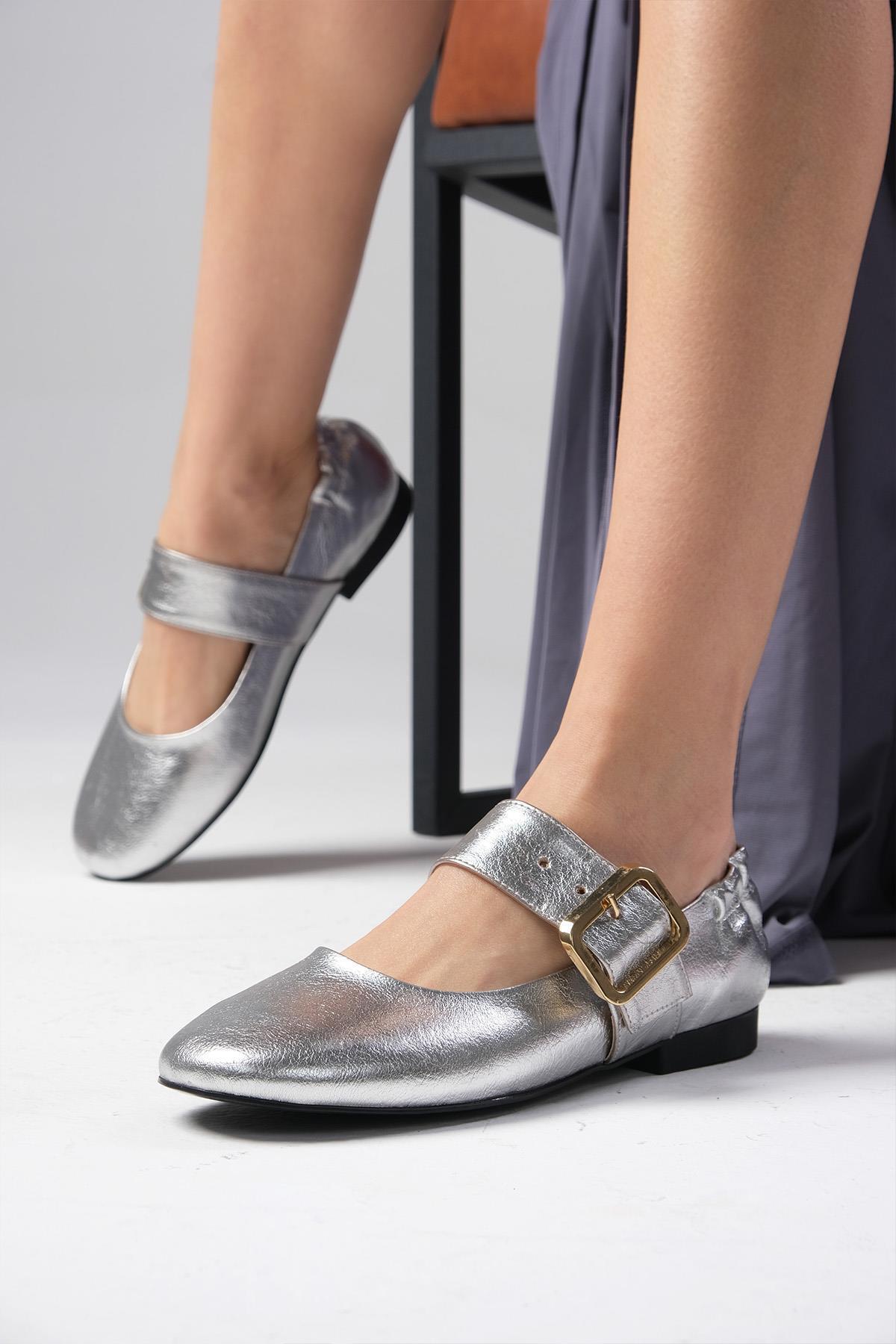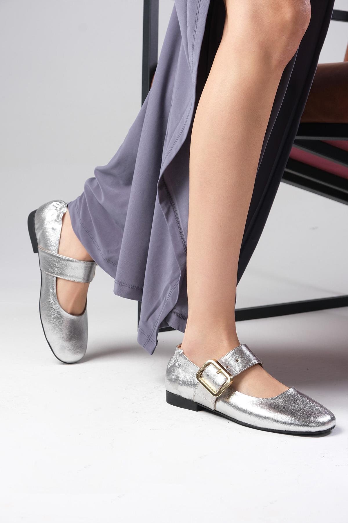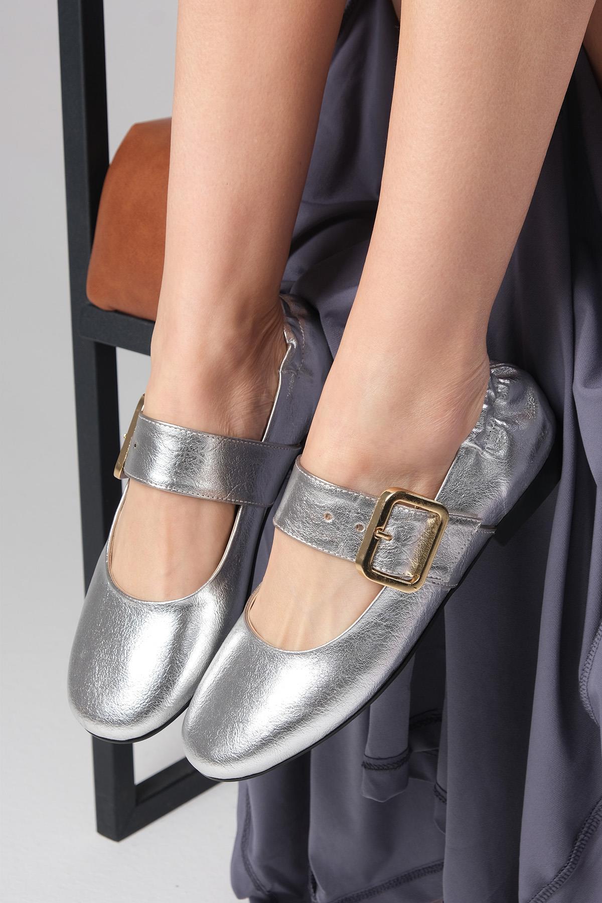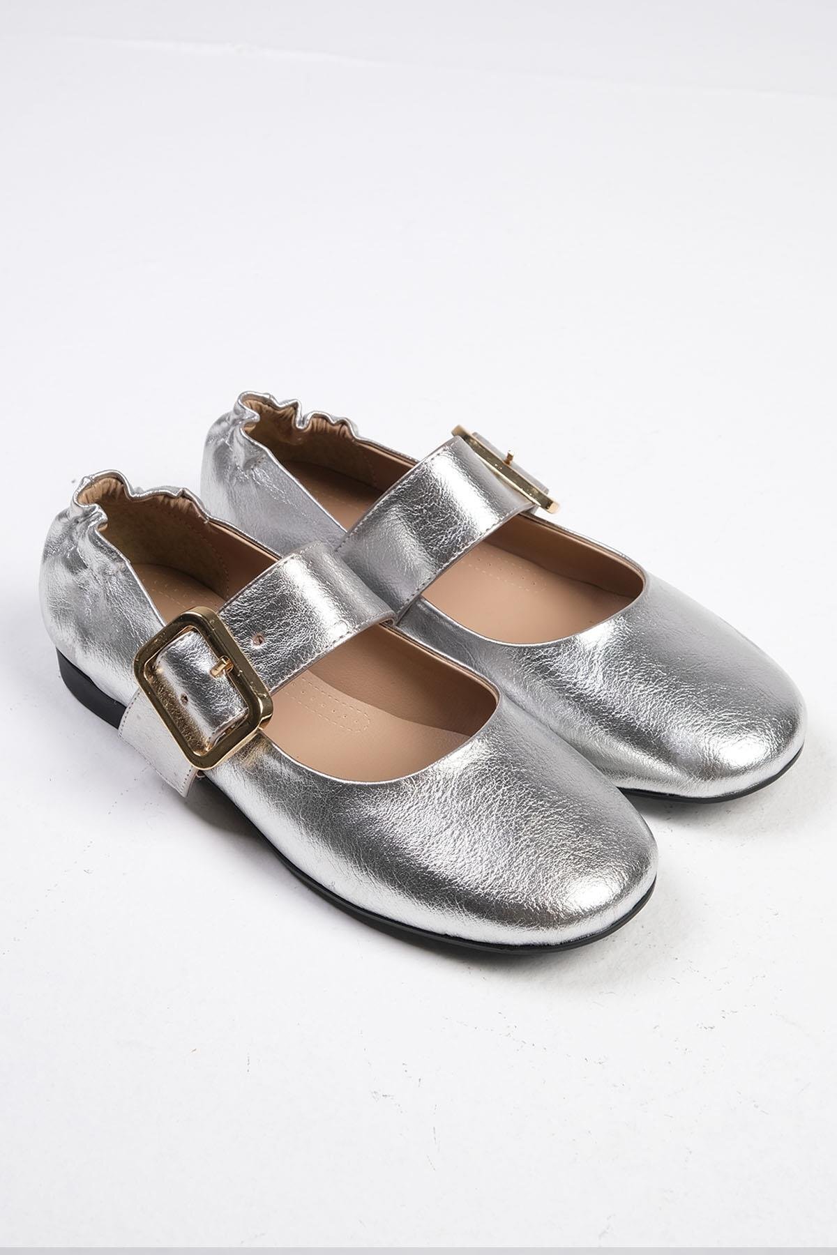 Diega Gümüş Renk Kalın Kemerli Kadın Babet Diega Gümüş Renk Kalın Kemerli Kadın Babet 01600C 41