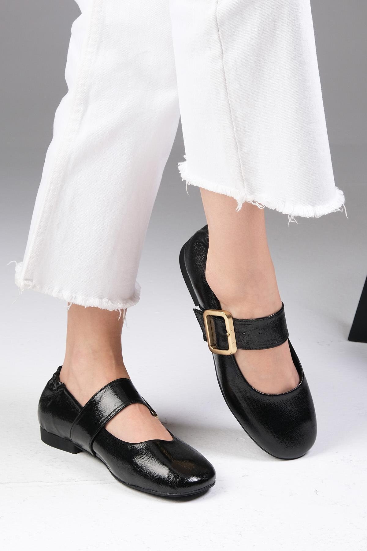 Diega Siyah Renk Kalın Kemerli Kadın Babet Diega Siyah Renk Kalın Kemerli Kadın Babet 01600C 41