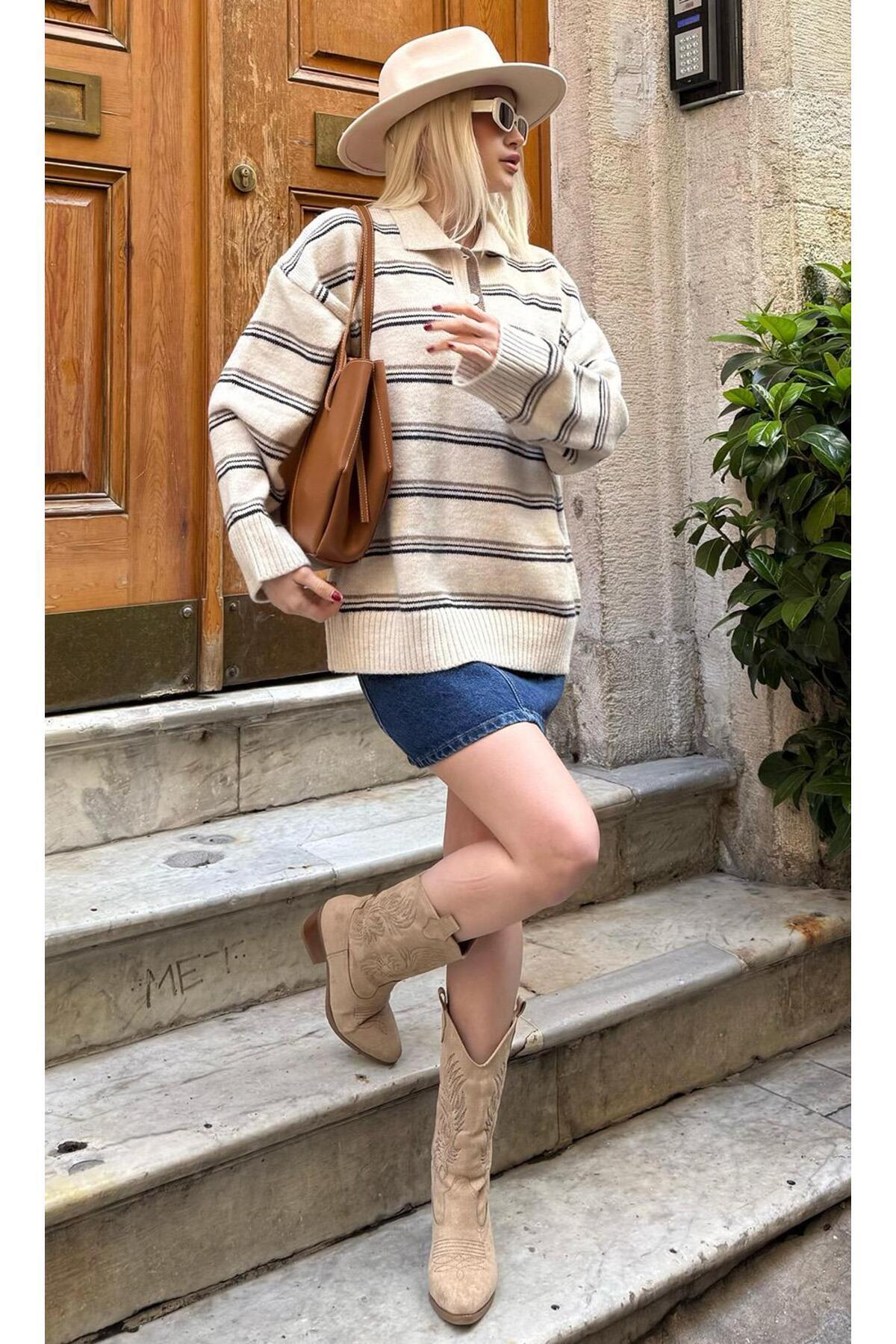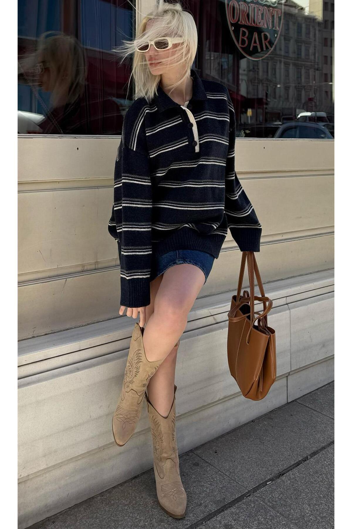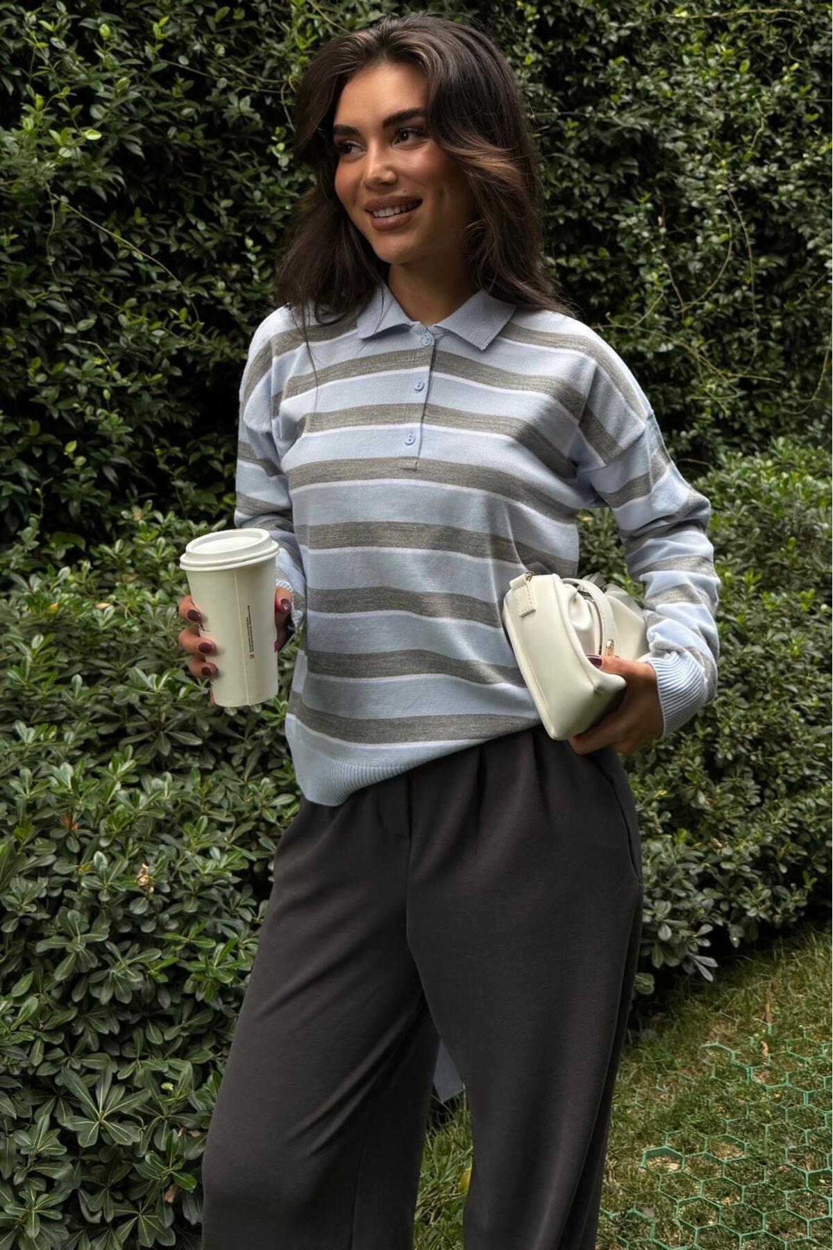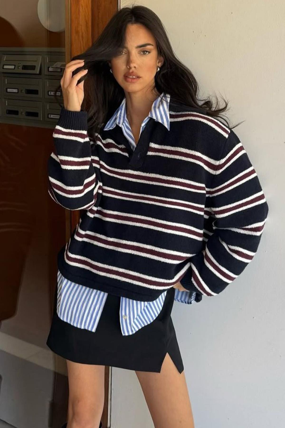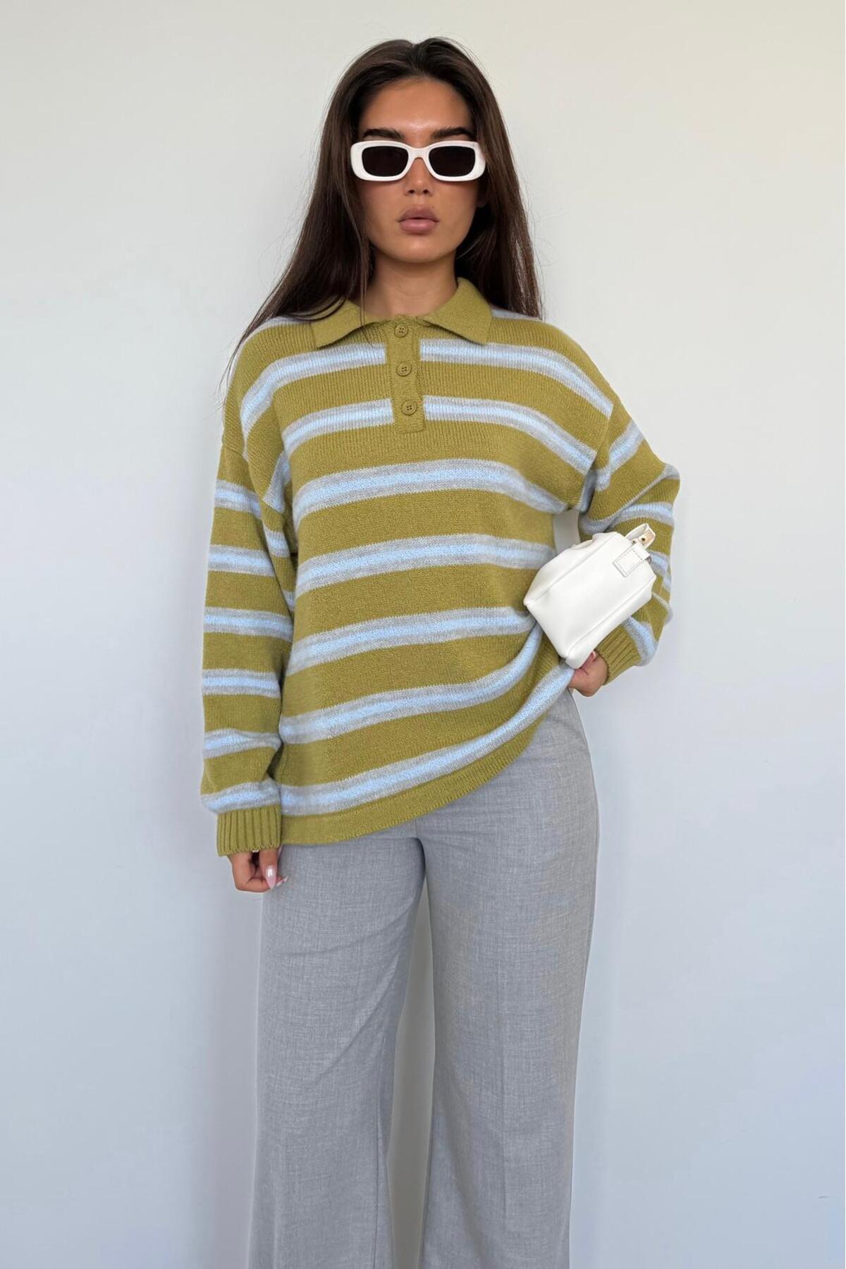 Lacivert Çizgili Düğmeli Polo Yaka Kazak Mg2357 Lacivert Çizgili Düğmeli Polo Yaka Kazak Mg2357 MG2357 L