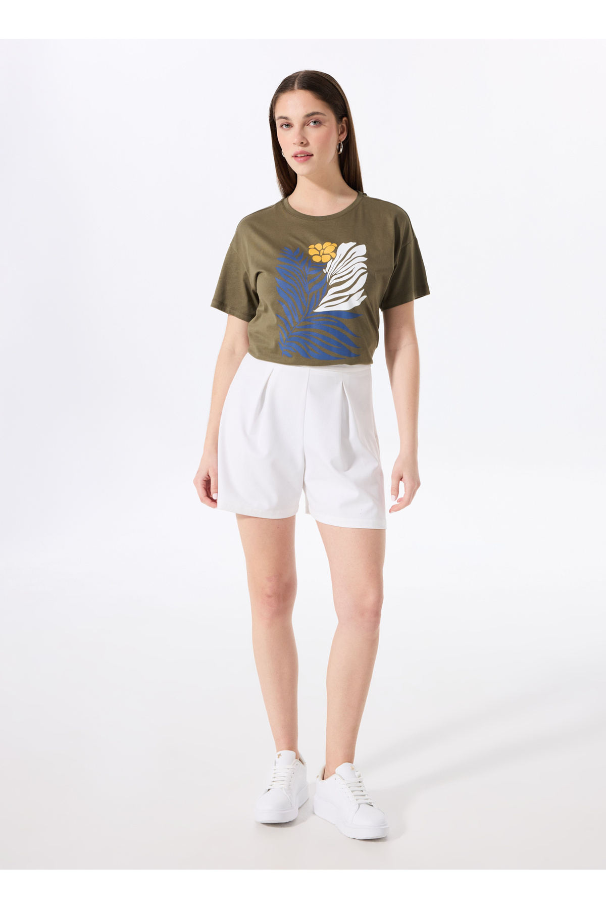 Bisiklet Yaka Baskılı Haki Kadın T-Shirt F5SL-TST0458 Bisiklet Yaka Baskılı Haki Kadın T-Shirt F5SL-TST0458 5003224208 XL