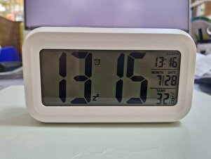 Öğrenci Ders Çalışma Dijital Masa Saati Fotoselli Alarmlı Işıklı Termometre Takvim Çalar Saat Öğrenci Ders Çalışma Dijital Masa Saati Fotoselli Alarmlı Işıklı Termometre Takvim Çalar Saat Masa-Saati-Beyaz-2 تک سایز