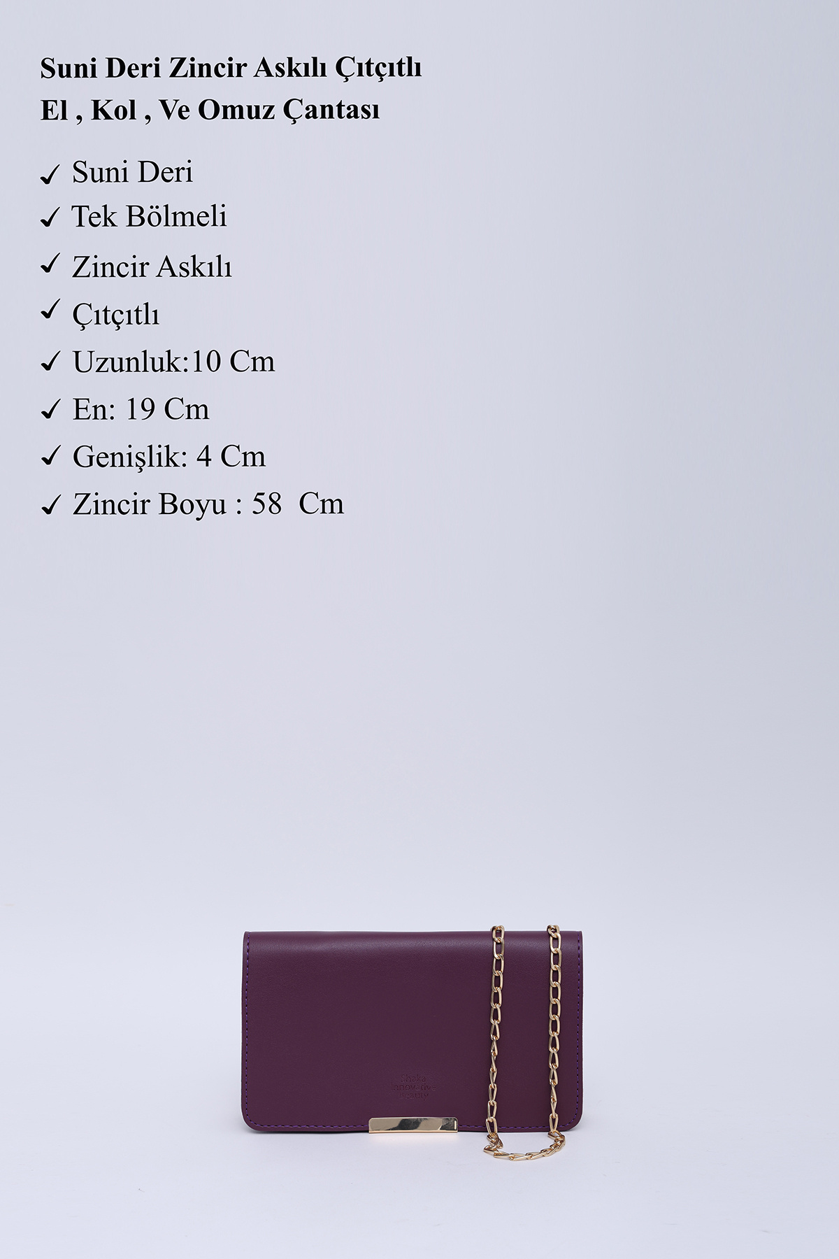 Mor SHK186 Suni Deri Tek Bölmeli Çıtçıtlı Zincir Askılı El , Kol ve Omuz Çantası Mor SHK186 Suni Deri Tek Bölmeli Çıtçıtlı Zincir Askılı El , Kol ve Omuz Çantası S235-00022 Standart