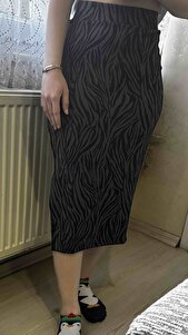 Kadın Zebra Desenli Siyah Antrasit Yırtmaçlı Midi Etek Kadın Zebra Desenli Siyah Antrasit Yırtmaçlı Midi Etek MJE304 XL