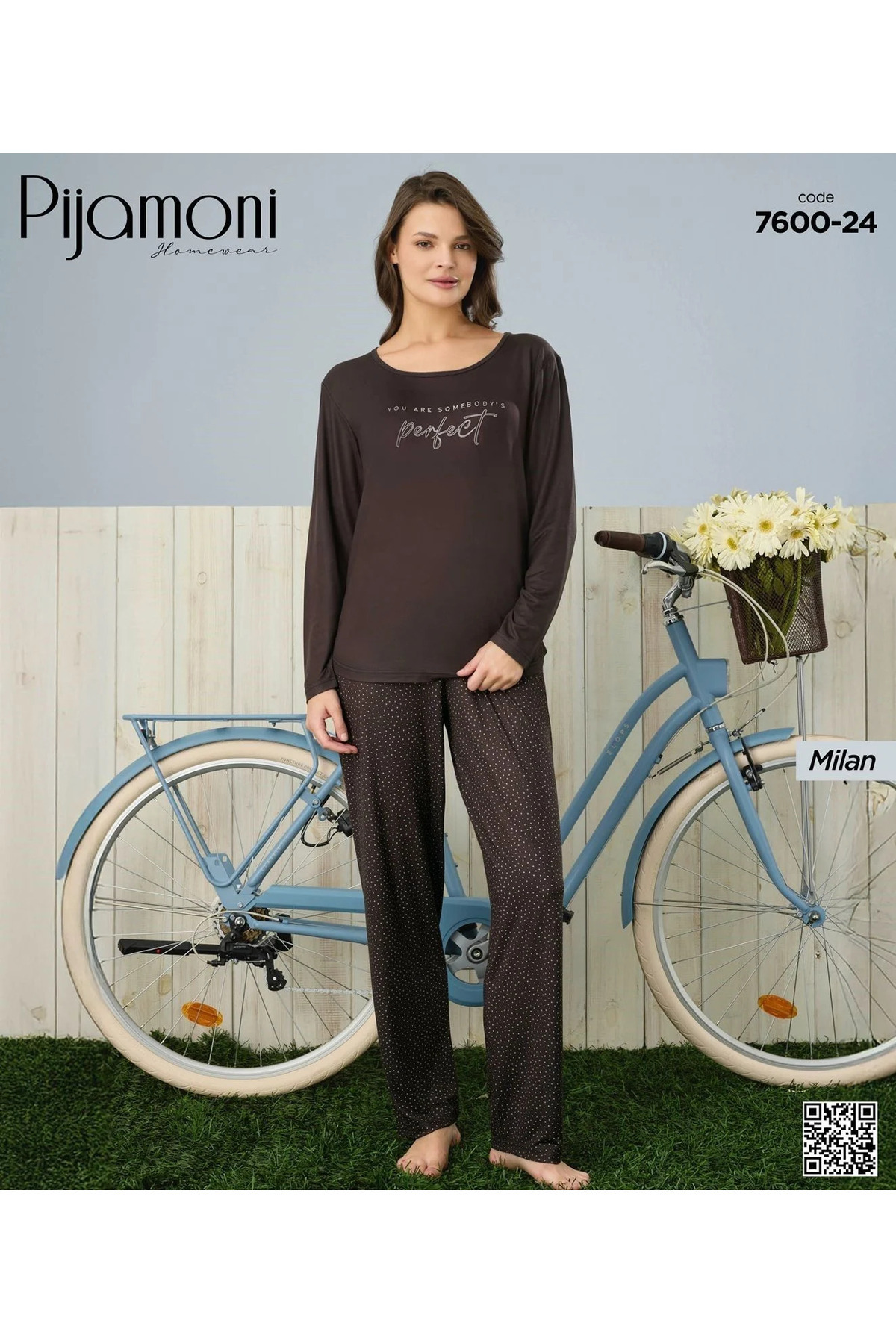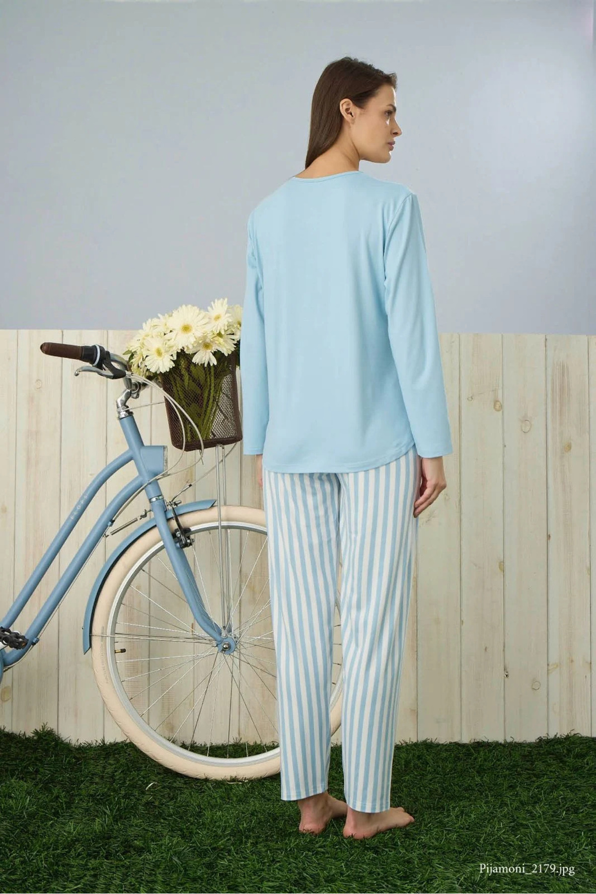 Mint Renkli Milan Kumaş Uzun Kollu Kadın Pijama Takımı Mint Renkli Milan Kumaş Uzun Kollu Kadın Pijama Takımı 7600-18 2XL