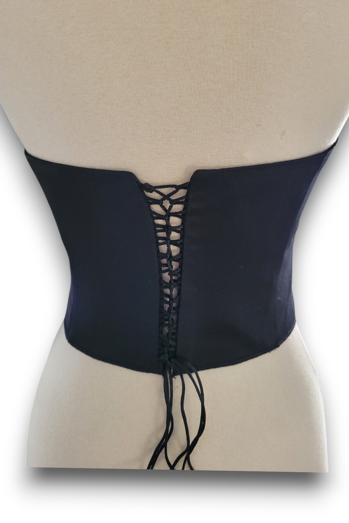 Siyah Saten Korse Büstiyer Hazır Beden Bağlamalı Siyah Saten Korse Büstiyer Hazır Beden Bağlamalı Brokar Saten 42