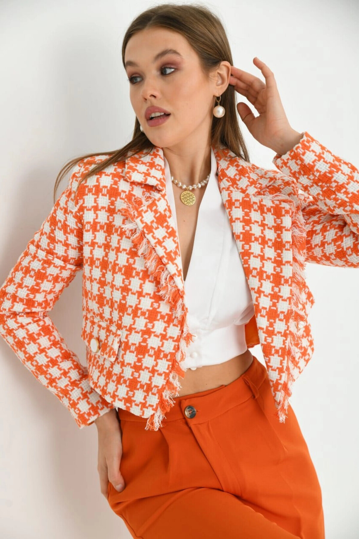 Kadın Ceket Düğme Detaylı Tüvit Crop Blazer Ceket Bej - KRN37 Kadın Ceket Düğme Detaylı Tüvit Crop Blazer Ceket Bej - KRN37 KRN37-BEJ 42