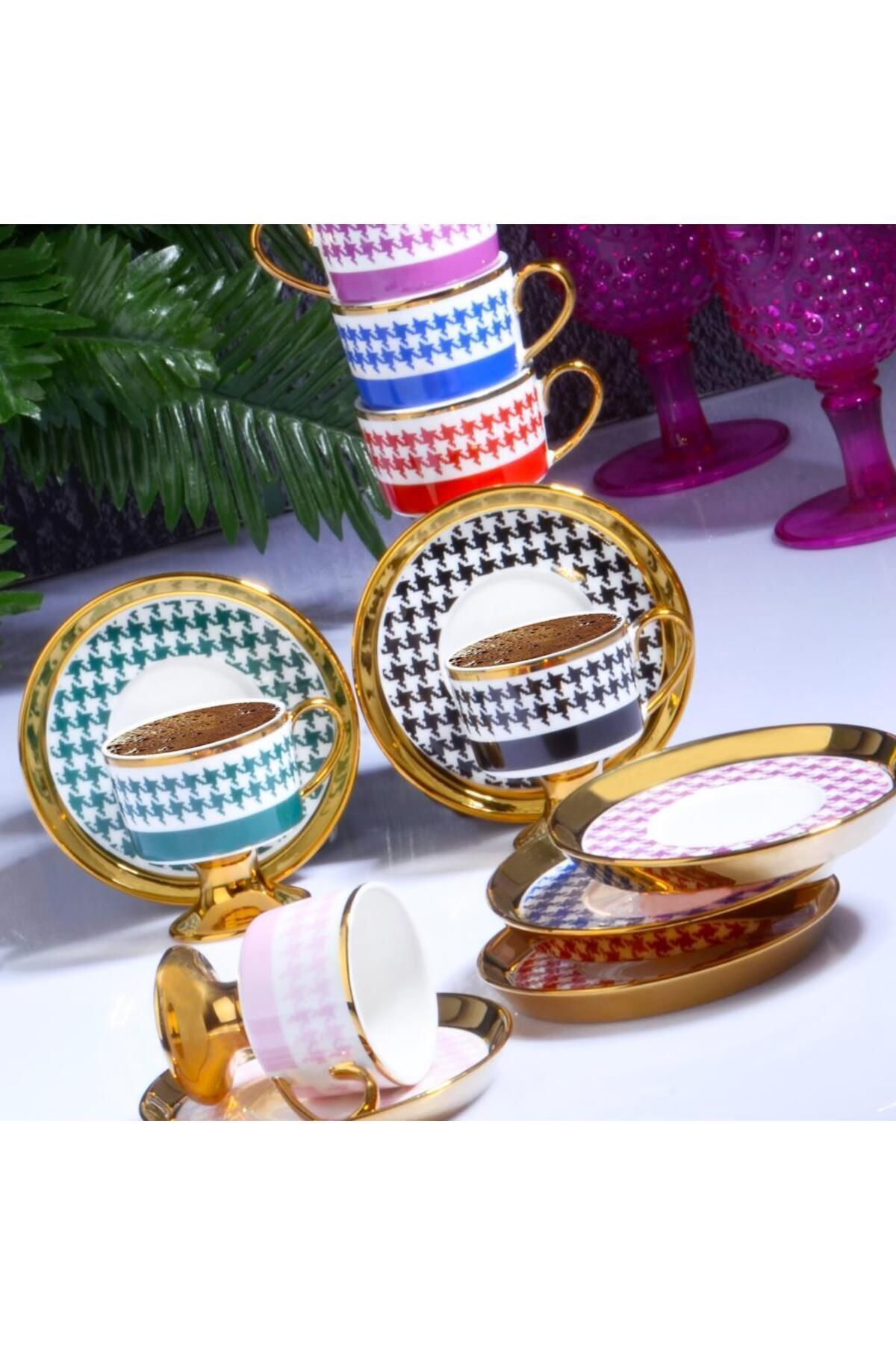 Kosova Porselen Kaz Ayaklı Renkli Kahve Fincan Takımı Kosova Porselen Kaz Ayaklı Renkli Kahve Fincan Takımı kazayak تک سایز