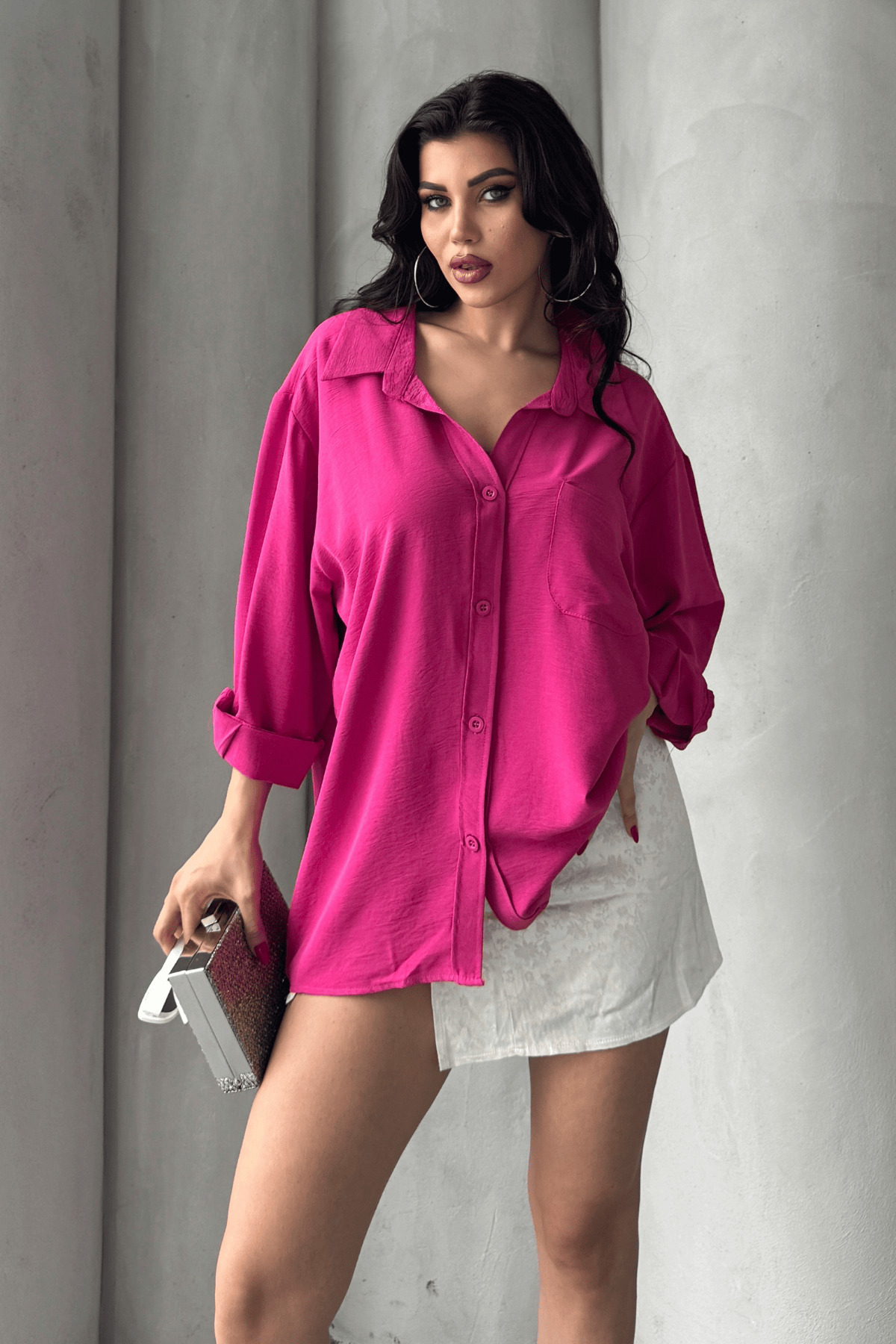 Kadın Perla Fuşya Tek Cepli Oversize Gömlek, Geniş Kalıp Gömlek, Ayrobin Gömlek Kadın Perla Fuşya Tek Cepli Oversize Gömlek, Geniş Kalıp Gömlek, Ayrobin Gömlek PWG3101251407 Standart