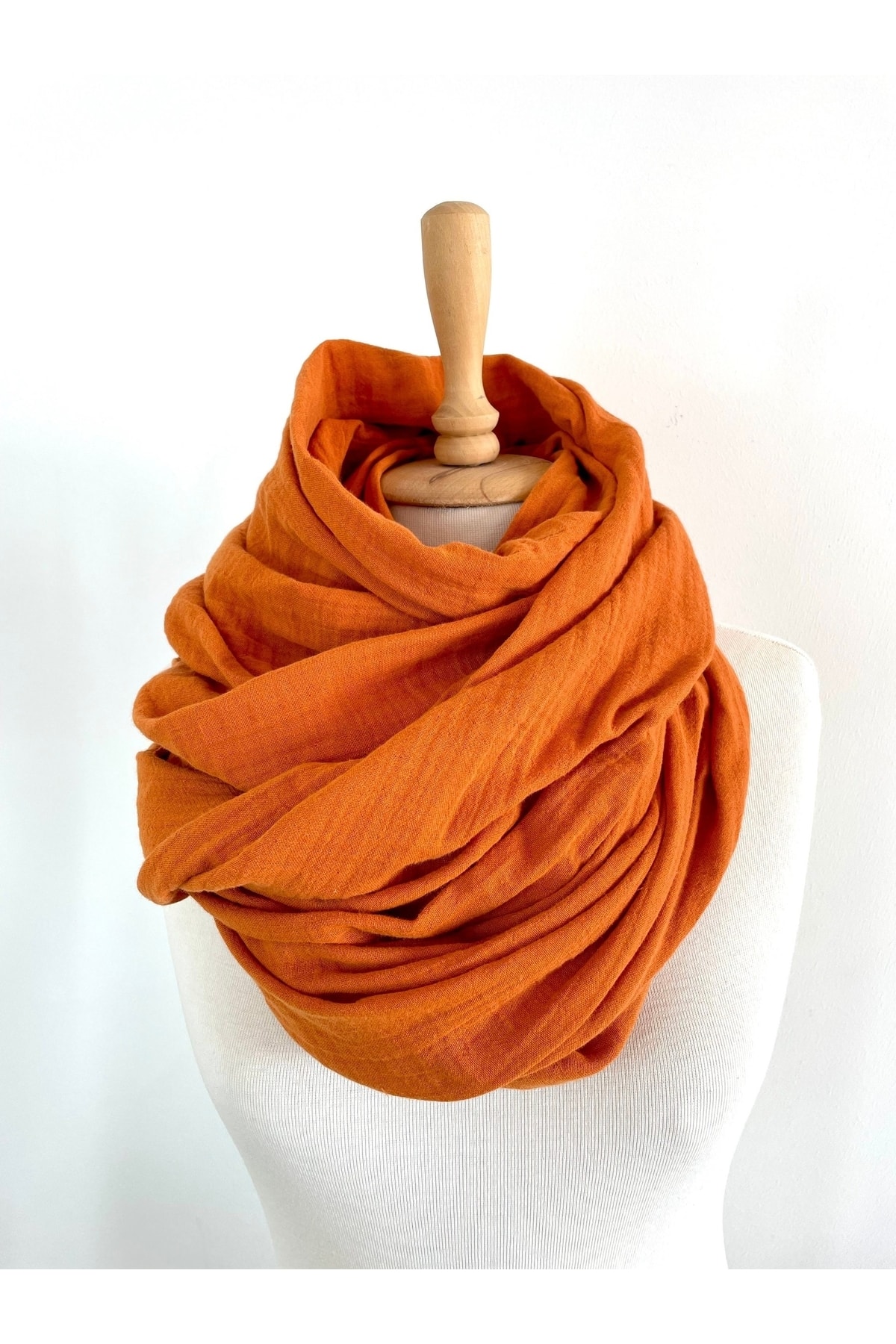 Kiremit Pamuk Şal Doğal Müslin Kumaş 2 katlı Butik Tasarım Kiremit Pamuk Şal Doğal Müslin Kumaş 2 katlı Butik Tasarım MSLN-KR 80 x 190