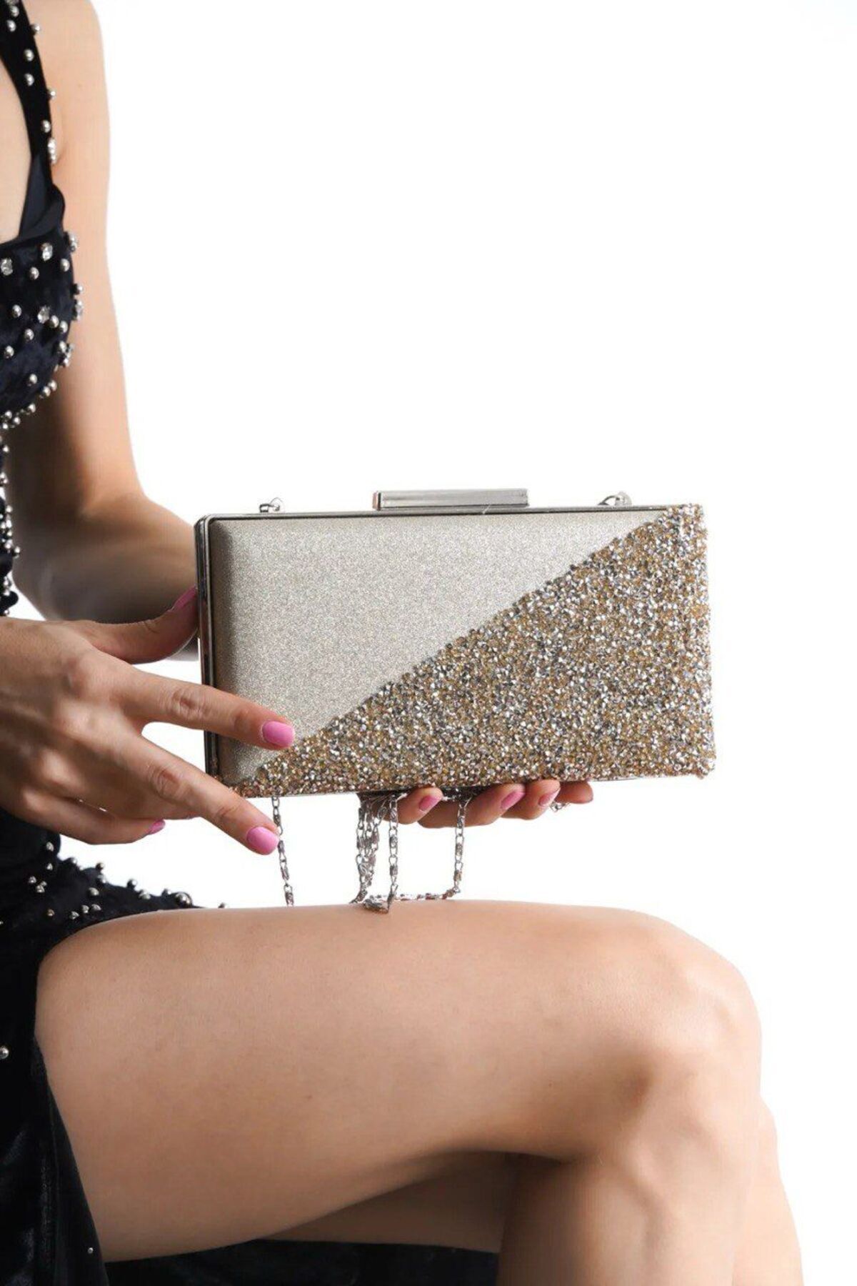 Kadın Beyaz Yarısı Taşlı Zincirli Askılı Abiye Çanta Kadın Beyaz Yarısı Taşlı Zincirli Askılı Abiye Çanta 4533 تک سایز