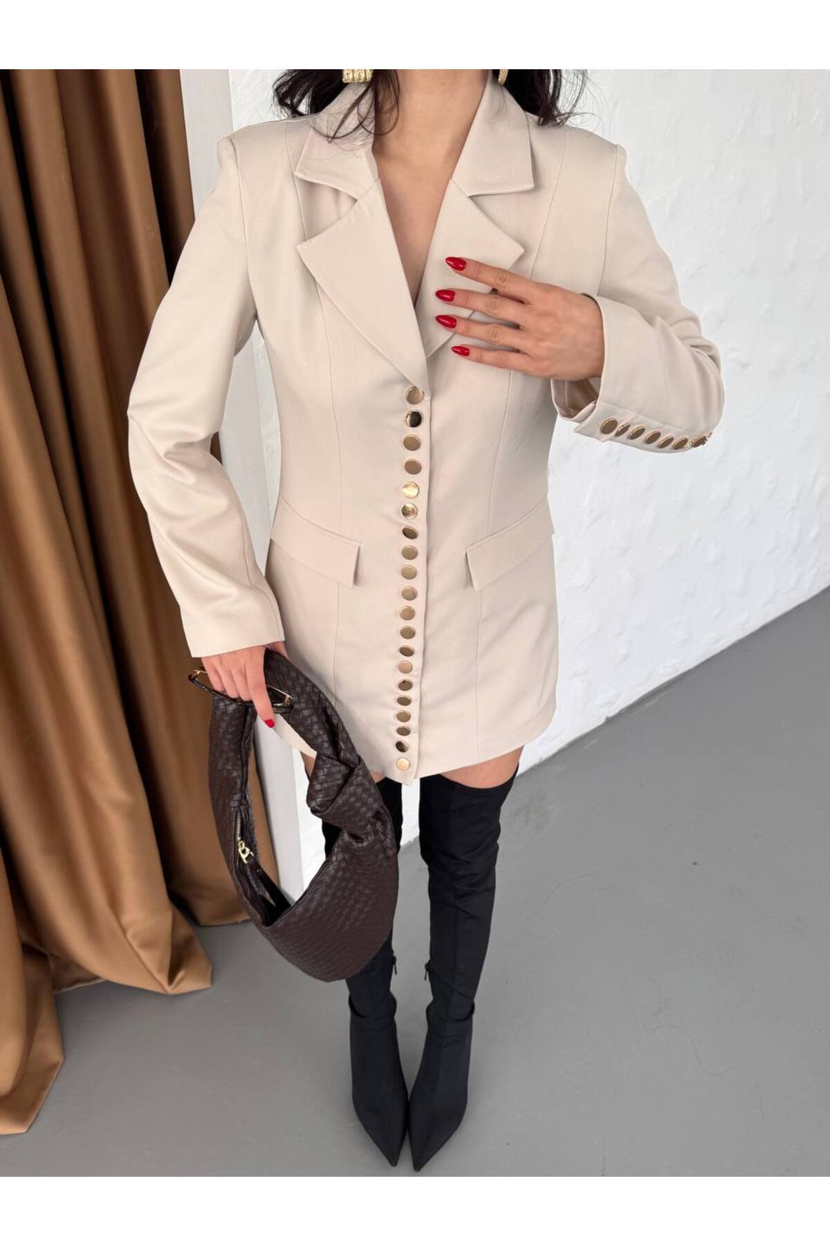 Trend Kadın Gold Çıt Çıt Detaylı Tasarım Uzun Blazer Ceket Trend Kadın Gold Çıt Çıt Detaylı Tasarım Uzun Blazer Ceket CTCTCKZF XL