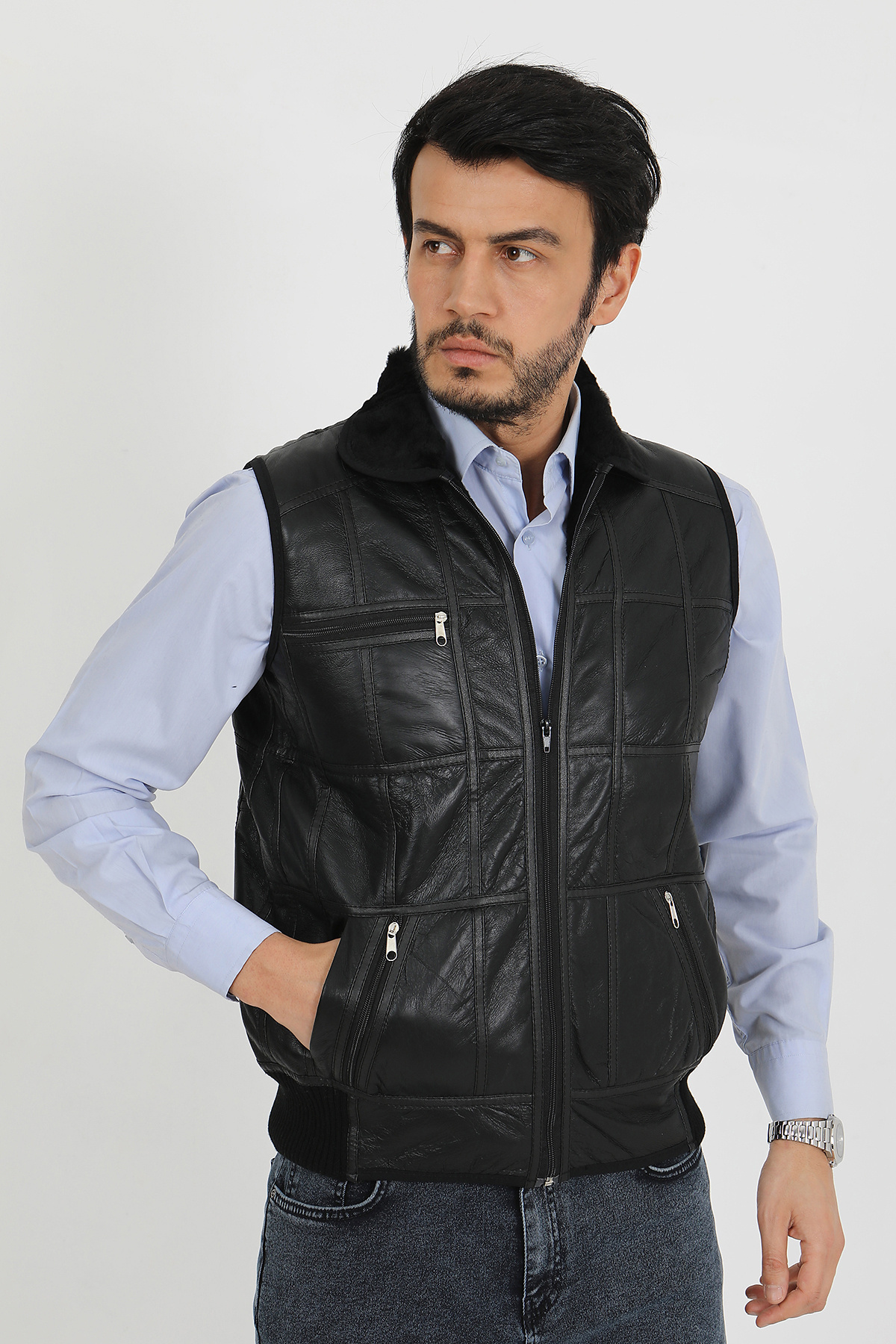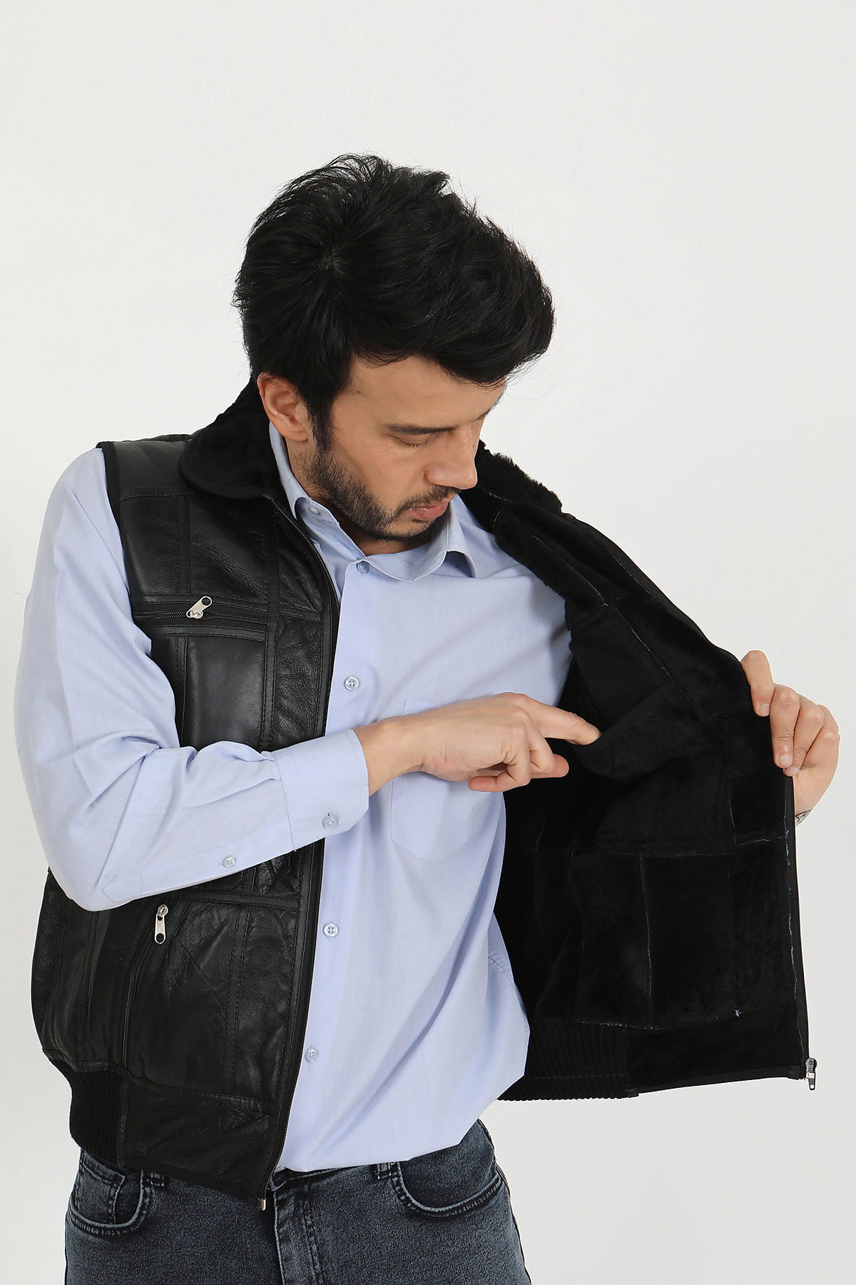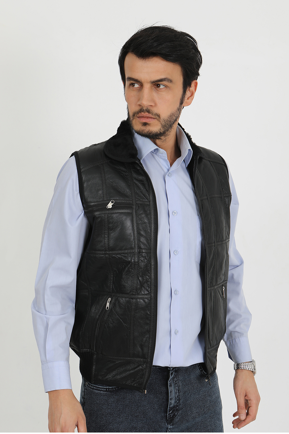 YAKALI İÇİ KÜRK DERİ YELEK YAKALI İÇİ KÜRK DERİ YELEK DERİ1002 6XL