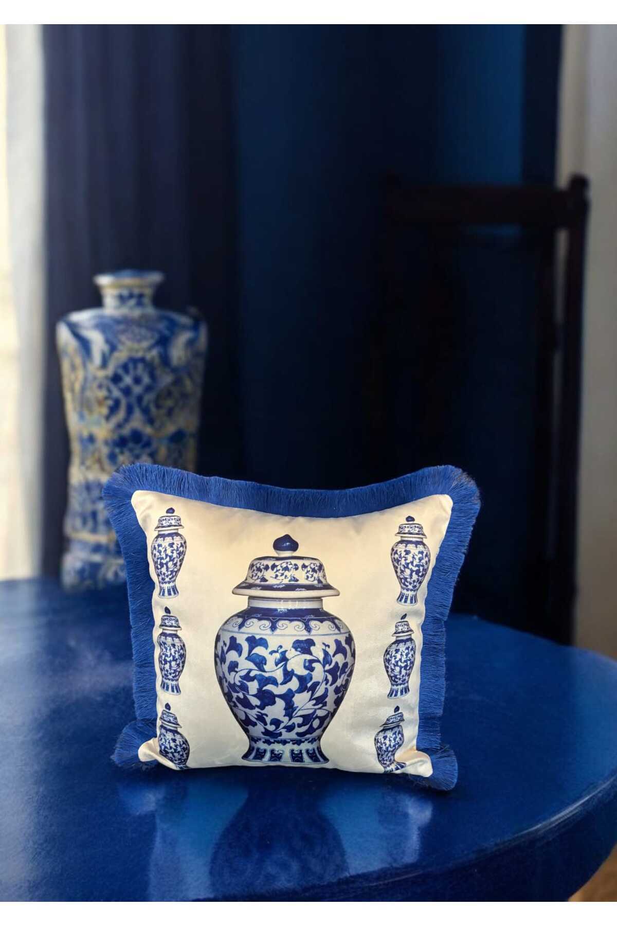 Kadife çift tarafı basklılı püsküllü kırlent kılıfı Kadife çift tarafı basklılı püsküllü kırlent kılıfı mavipüskül 35 x 50