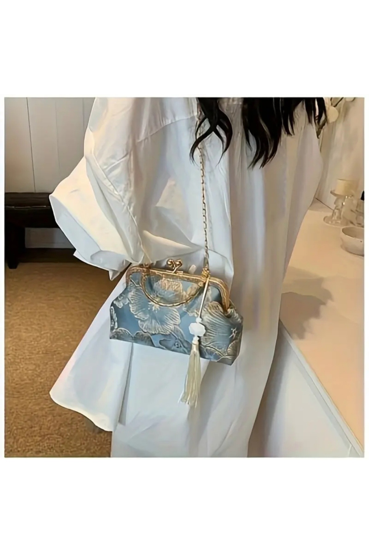 Püsküllü Şık Çiçekli Mavi Gece Çantası & Vintange Esintili Kadın Çantası Püsküllü Şık Çiçekli Mavi Gece Çantası & Vintange Esintili Kadın Çantası puskullu01 AA
