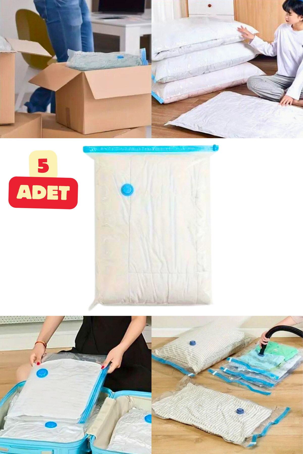 5'li Vakumlu Saklama Poşeti Seti Yorgan&yastık&battaniye&elbise - Vakumlu Hurç - Vakumlu Torba 5'li Vakumlu Saklama Poşeti Seti Yorgan&yastık&battaniye&elbise - Vakumlu Hurç - Vakumlu Torba 5Lisett تک سایز