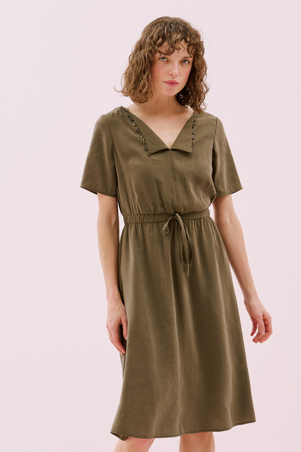 Yakası Boncuk İşlemeli Midi Boy Elbise Haki Y2511006_023 Yakası Boncuk İşlemeli Midi Boy Elbise Haki Y2511006_023 4da4-45194 42