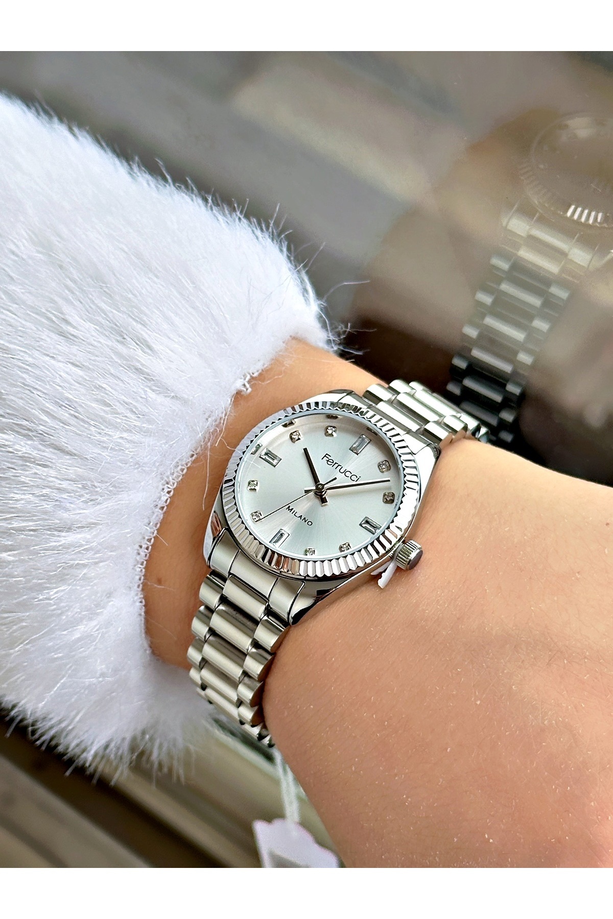 Özel Tasarım Çelik Kordon Gümüş Renk Kadın Kol Saati Özel Tasarım Çelik Kordon Gümüş Renk Kadın Kol Saati FRC2007MR تک سایز