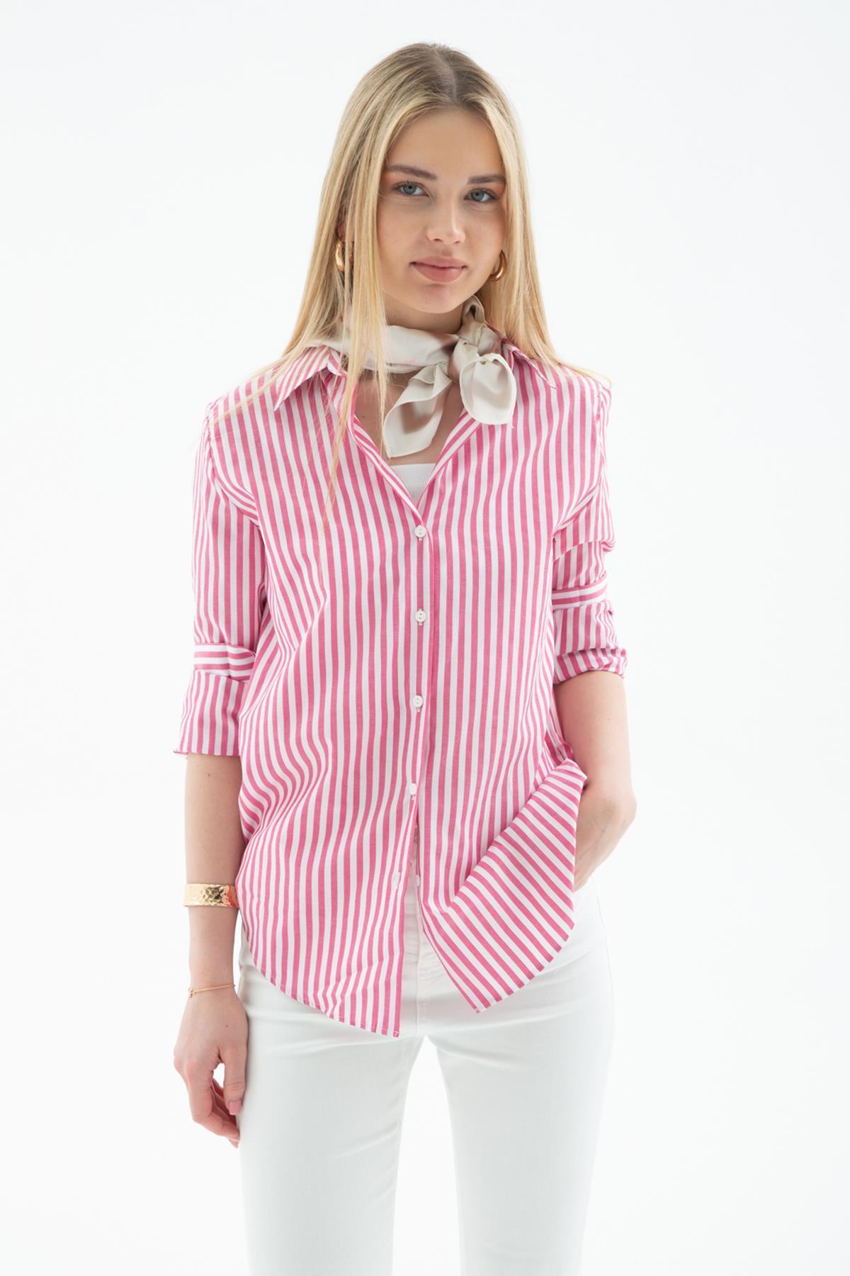 Oversize Çizgili Gömlek Pembe Oversize Çizgili Gömlek Pembe 25Y0102K1 XL