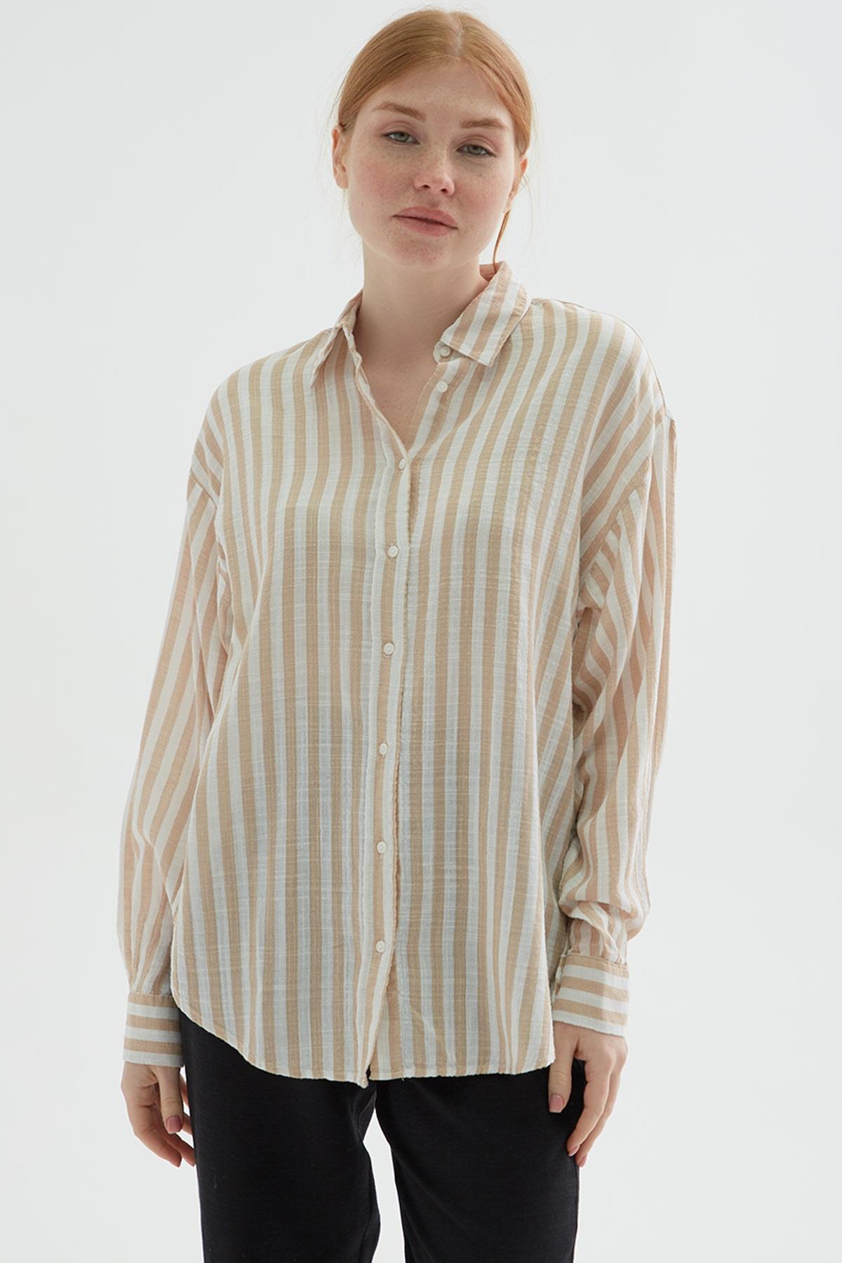 Oversize Çizgili Gömlek Mavi Oversize Çizgili Gömlek Mavi 25Y0102K1 XL