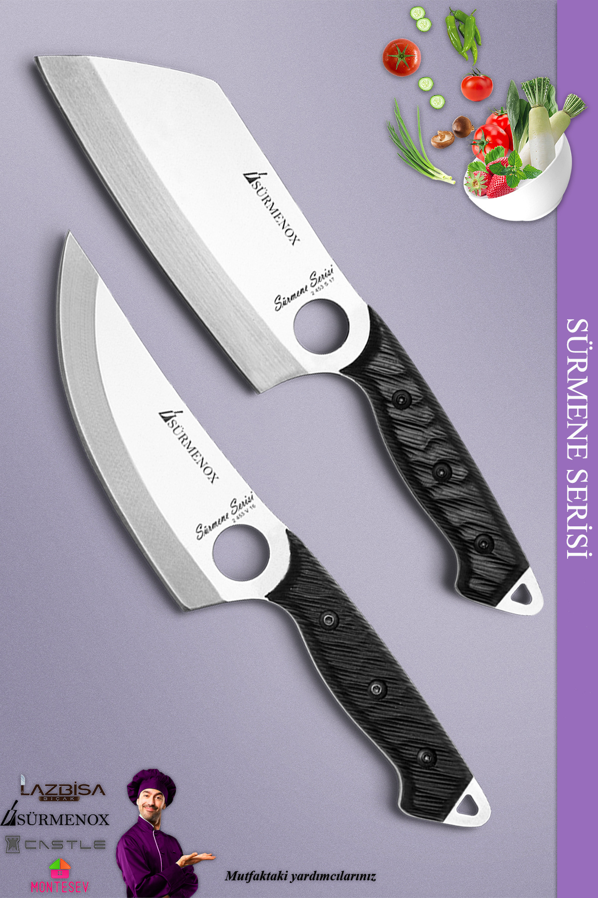 Sürmene Serisi Outdoor Bıçak Kamp Bıçağı Mutfak Şef Bıçak Bıçağı Deri Kılıflı 2 Li Set (Out-006) Sürmene Serisi Outdoor Bıçak Kamp Bıçağı Mutfak Şef Bıçak Bıçağı Deri Kılıflı 2 Li Set (Out-006) SrmOut6 تک سایز