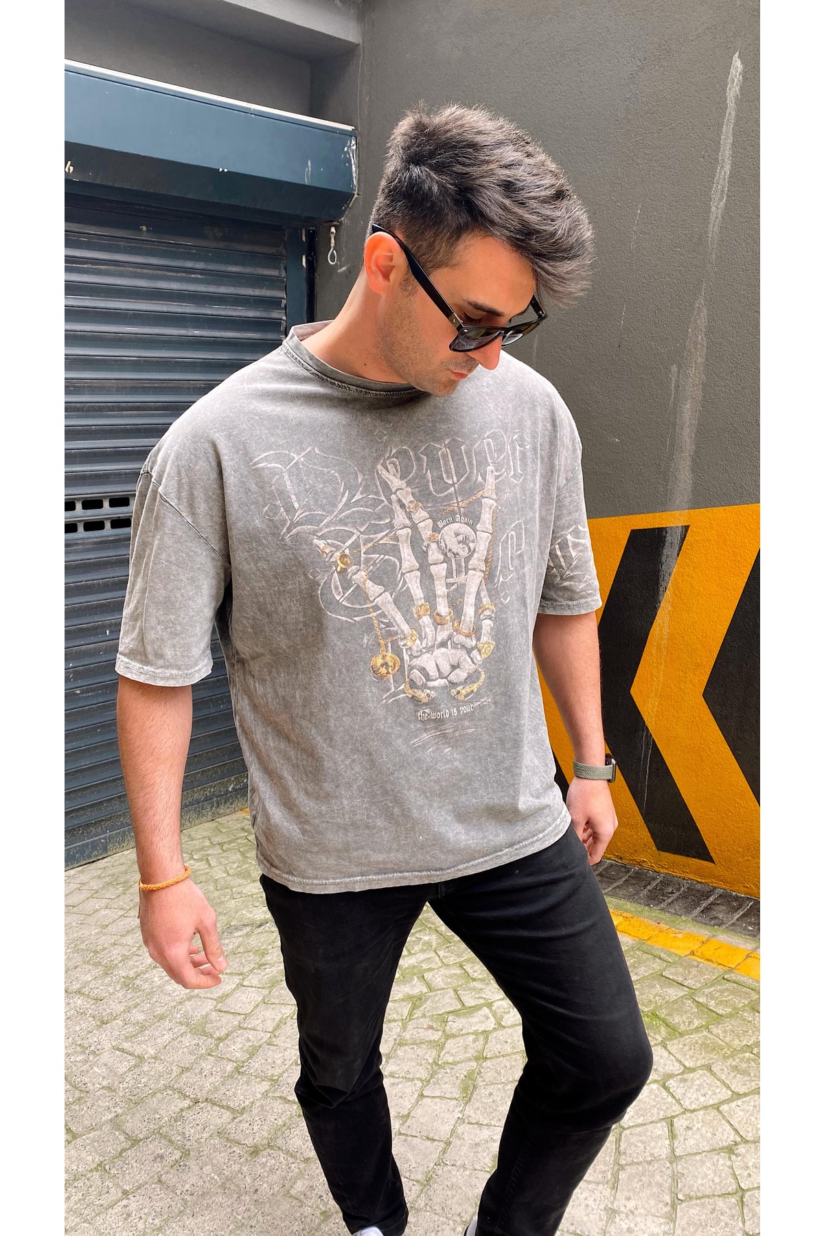 مشخصات فنی Erkek Antrasit Özel Yıkamalı Kumaş Oversize Tshirt