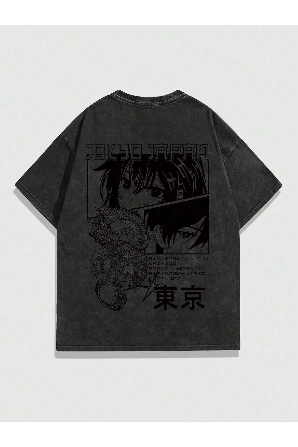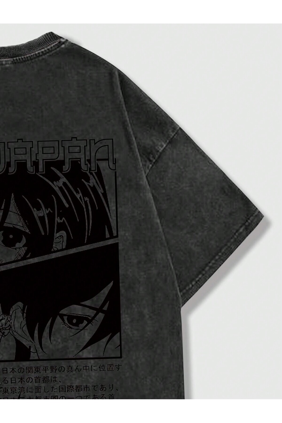 مشخصات فنی Erkek Antrasit Özel Yıkamalı Kumaş Oversize Tshirt