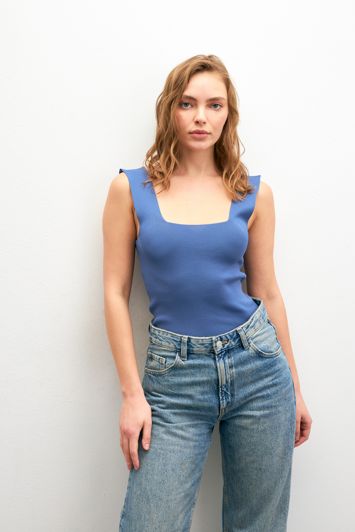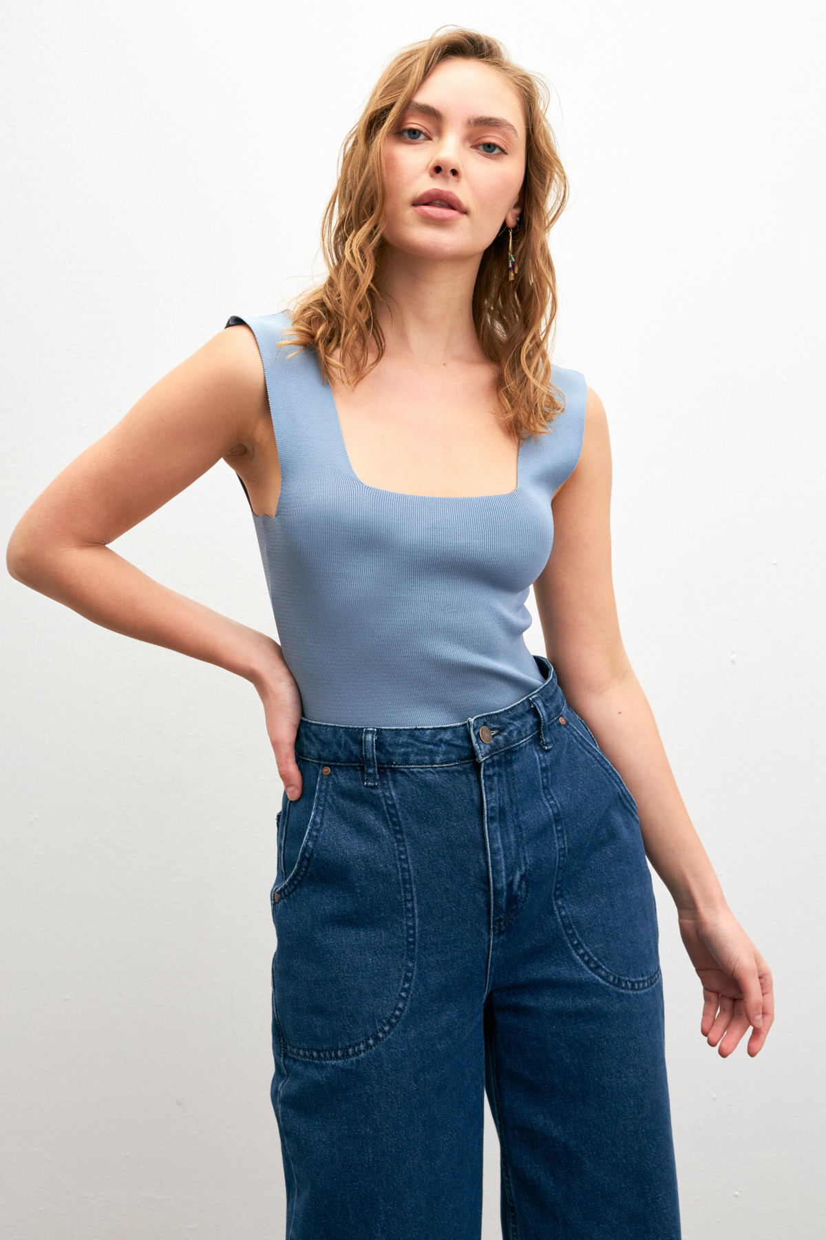 Kadın Bebe Mavisi Basic Kare Yaka Kolsuz Bluz Kalın Askılı Yazlık/Kışlık Triko Atlet Kadın Bebe Mavisi Basic Kare Yaka Kolsuz Bluz Kalın Askılı Yazlık/Kışlık Triko Atlet KARE100 Standart