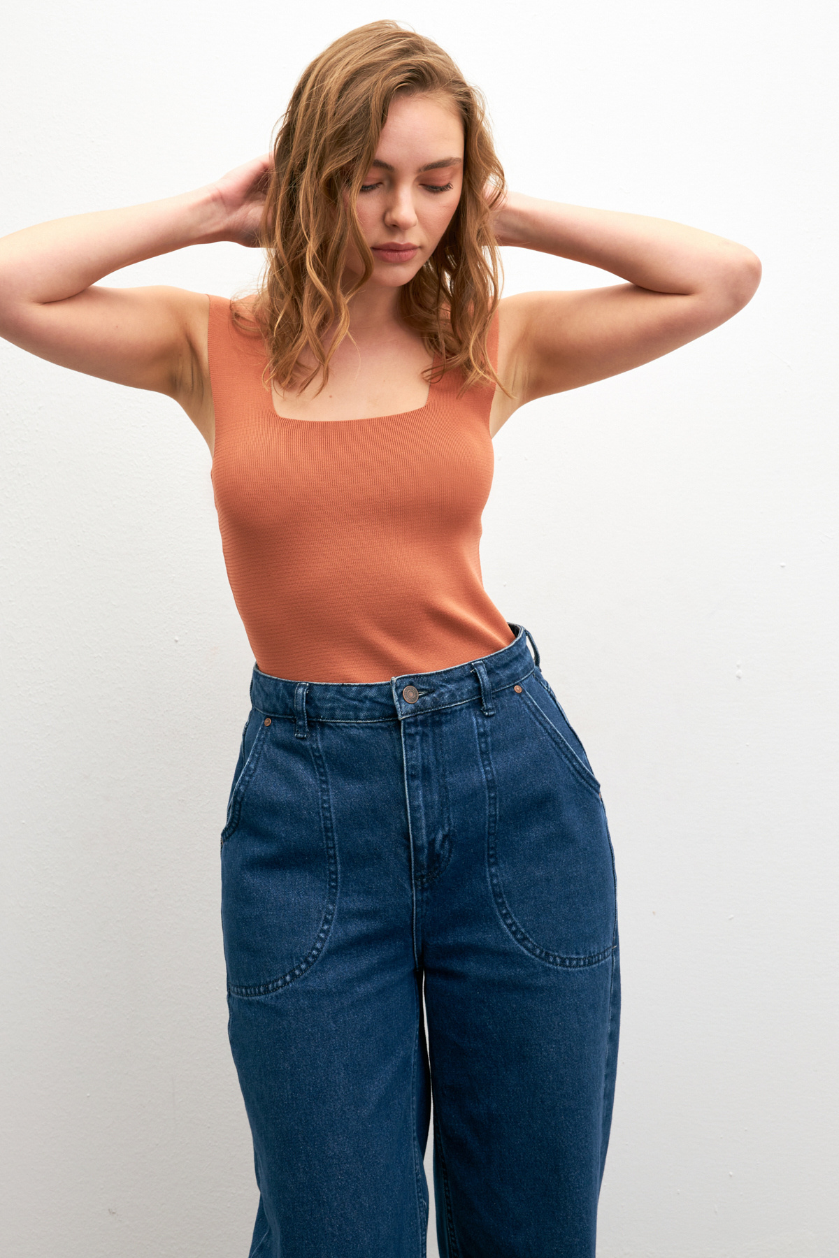 Kadın Kiremit Basic Kare Yaka Kolsuz Bluz Kalın Askılı Yazlık/Kışlık Triko Atlet Kadın Kiremit Basic Kare Yaka Kolsuz Bluz Kalın Askılı Yazlık/Kışlık Triko Atlet KARE100 Standart