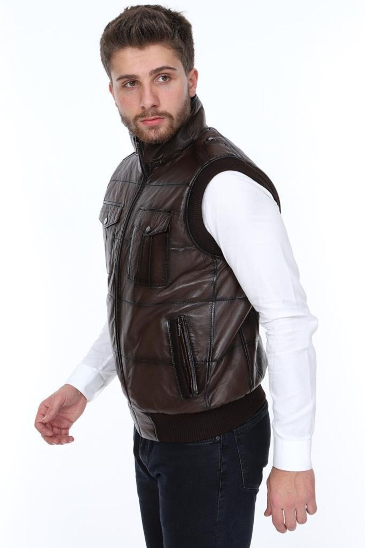 Hakiki Kuzu Derisi Fermuarlı Lastikli Erkek Deri Yelek Kahverengi Hakiki Kuzu Derisi Fermuarlı Lastikli Erkek Deri Yelek Kahverengi PRA-12465269-923432-dw