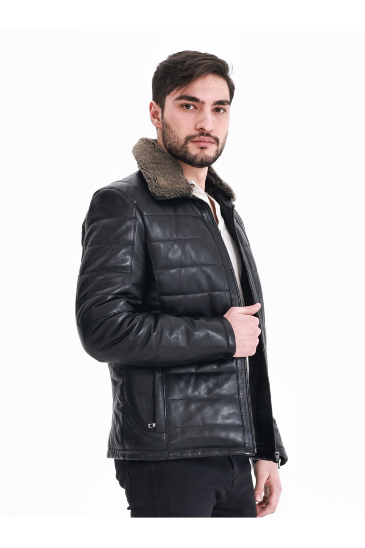 Hakiki Deri Şişme Desen Fermuarlı Deri Ceket Lacivert Hakiki Deri Şişme Desen Fermuarlı Deri Ceket Lacivert PRA-12465261-151546-dw 3XL