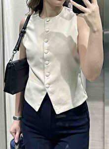 Düğme Detaylı Fitted Bisiklet Yaka Yelek Düğme Detaylı Fitted Bisiklet Yaka Yelek M67NLVZ9 2XL