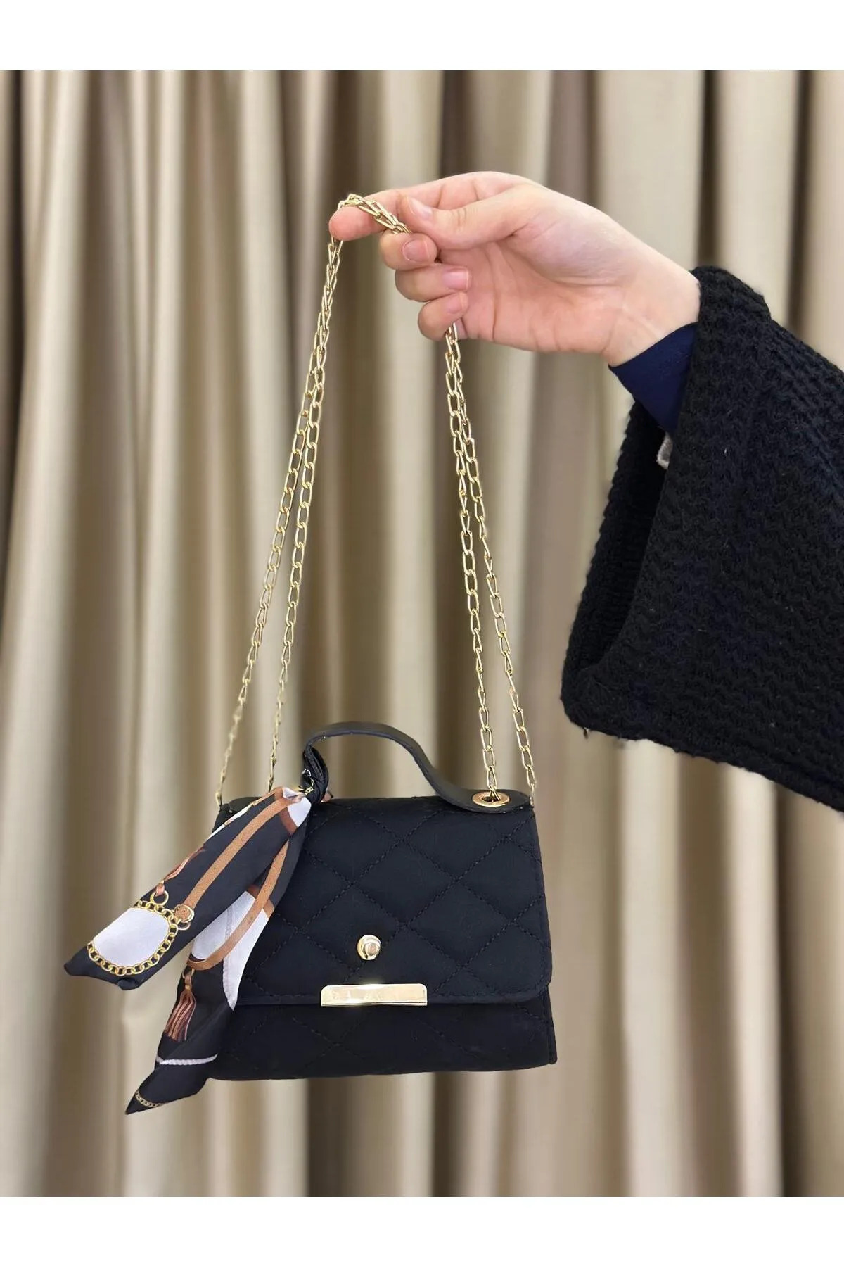 Kapitone Fularlı Zincir Askılı Kadın El ve Omuz Çantası Minimal Kadın Çanta Kapitone Fularlı Zincir Askılı Kadın El ve Omuz Çantası Minimal Kadın Çanta flr_mini Küçük Boy