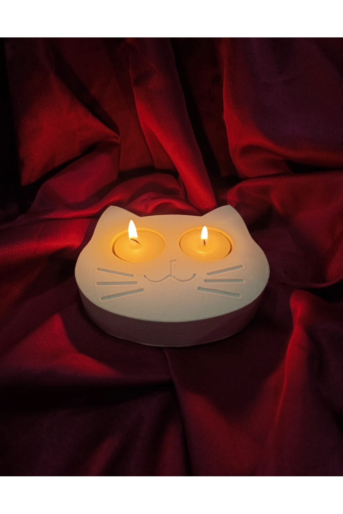 3D Baskı Delikli Kedi Şeklinde Tealight Mumluk - Dekoratif Aksesuar 3D Baskı Delikli Kedi Şeklinde Tealight Mumluk - Dekoratif Aksesuar DKT-2025-WH تک سایز