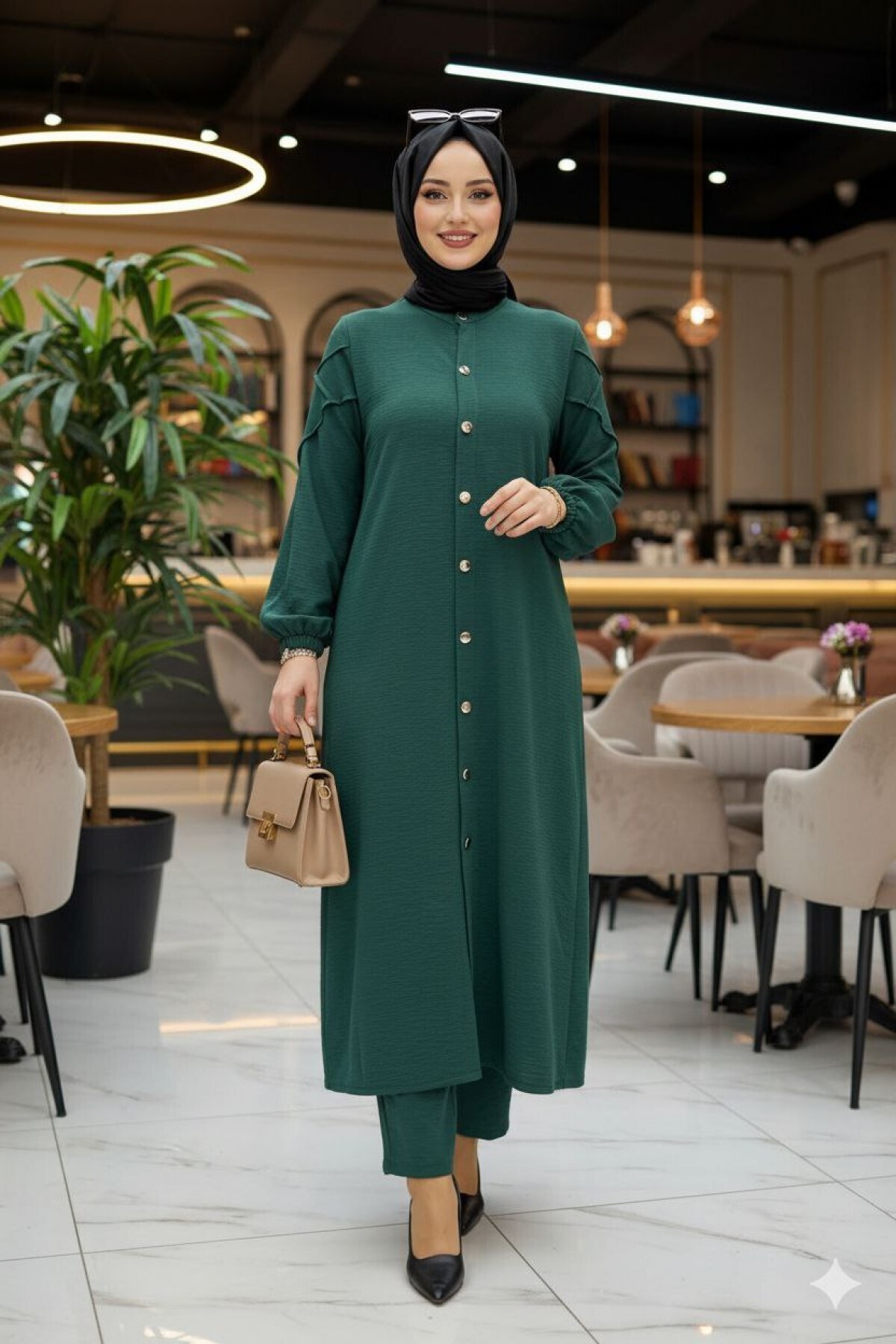 RAHİME TAKIM Rahat Kesim Aerobin Kumaş Tesettür Tunik Pantolon Takım Mint Yeşili RAHİME TAKIM Rahat Kesim Aerobin Kumaş Tesettür Tunik Pantolon Takım Mint Yeşili 64/7177 56