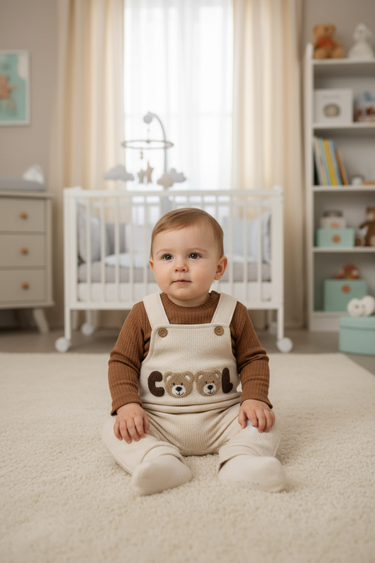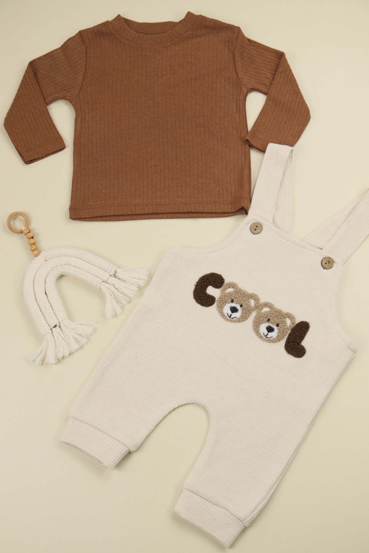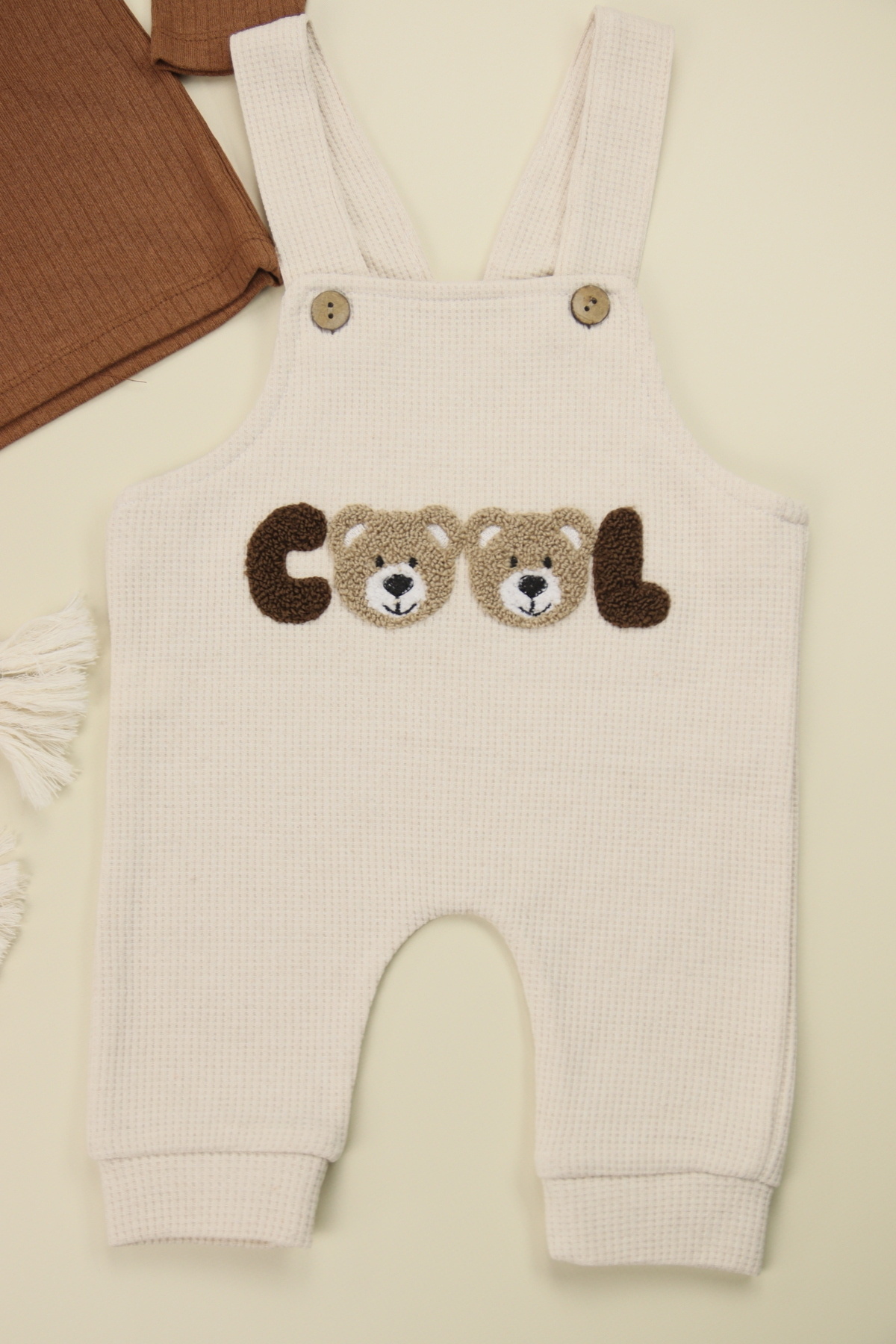 Önü Nakışlı Ahşap Düğmeli % 100 Organik Pamuk Bebek Salopet Takım Önü Nakışlı Ahşap Düğmeli % 100 Organik Pamuk Bebek Salopet Takım NKGZDE000001 18-24 AY