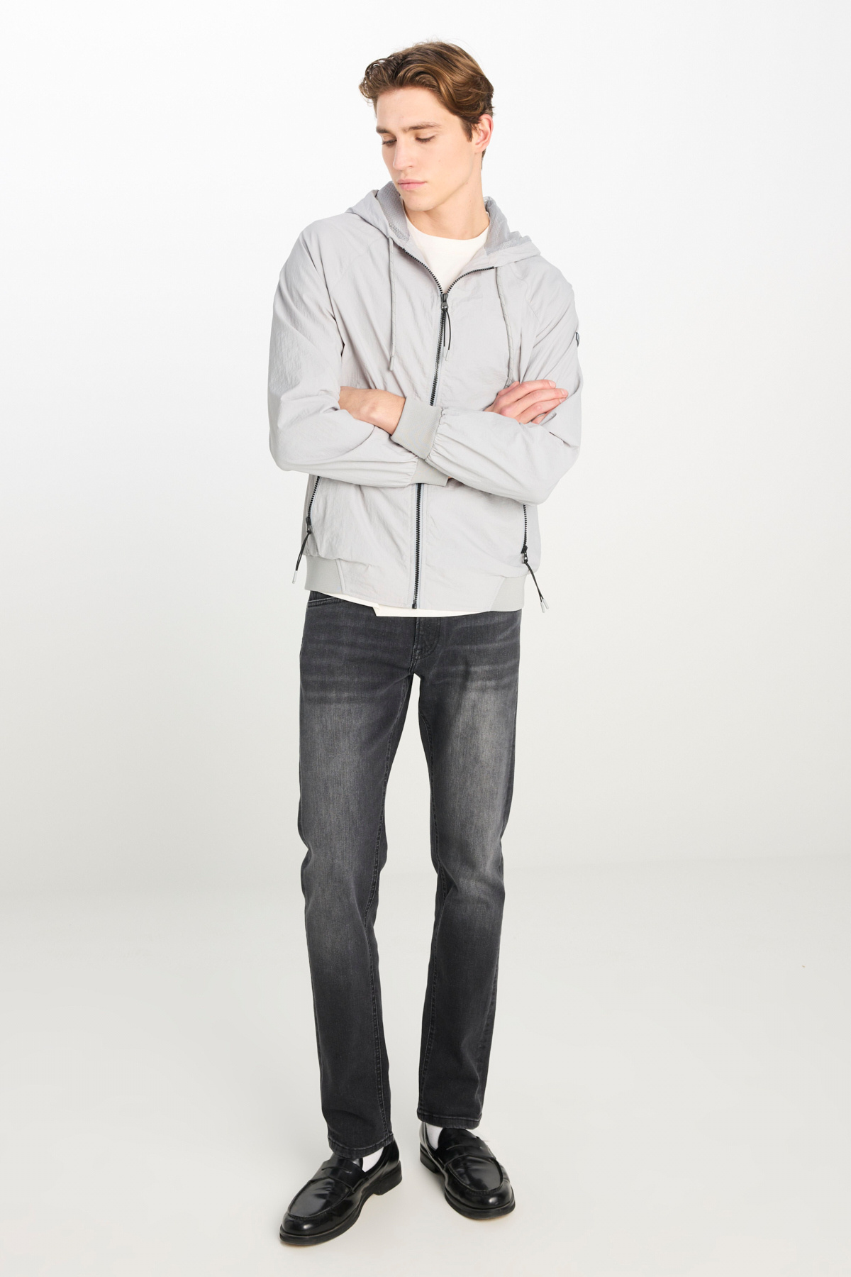 Regular Fit Normal Kesim Kapüşonlu Gri Yağmurluk Ceket Regular Fit Normal Kesim Kapüşonlu Gri Yağmurluk Ceket L231225 3XL