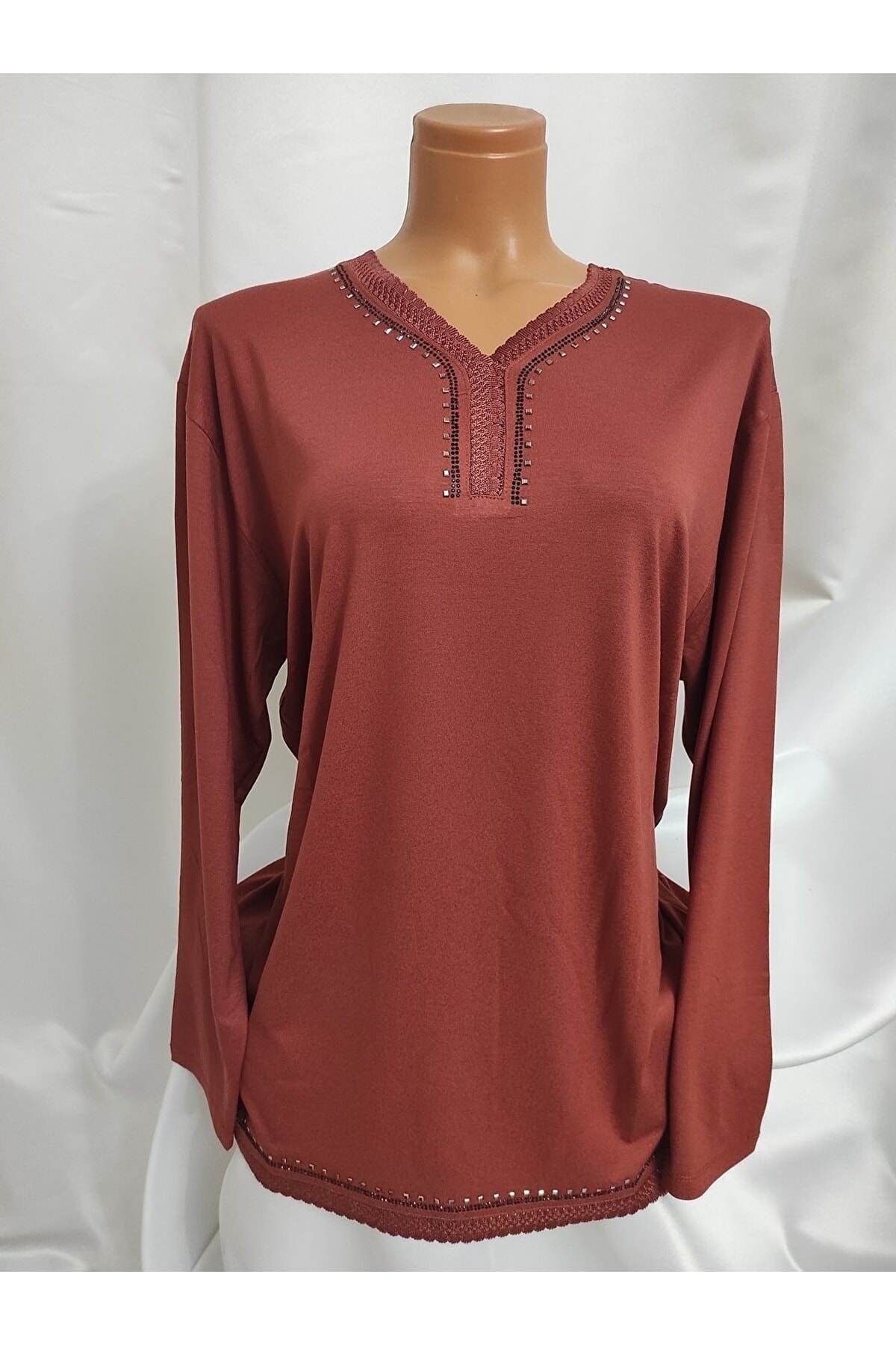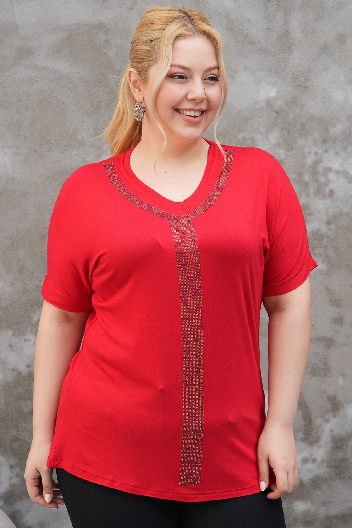Kadın V Yaka Likralı Büyük Beden Orta Yaş Anne Penye Bluz Kadın V Yaka Likralı Büyük Beden Orta Yaş Anne Penye Bluz mlk370045 3XL