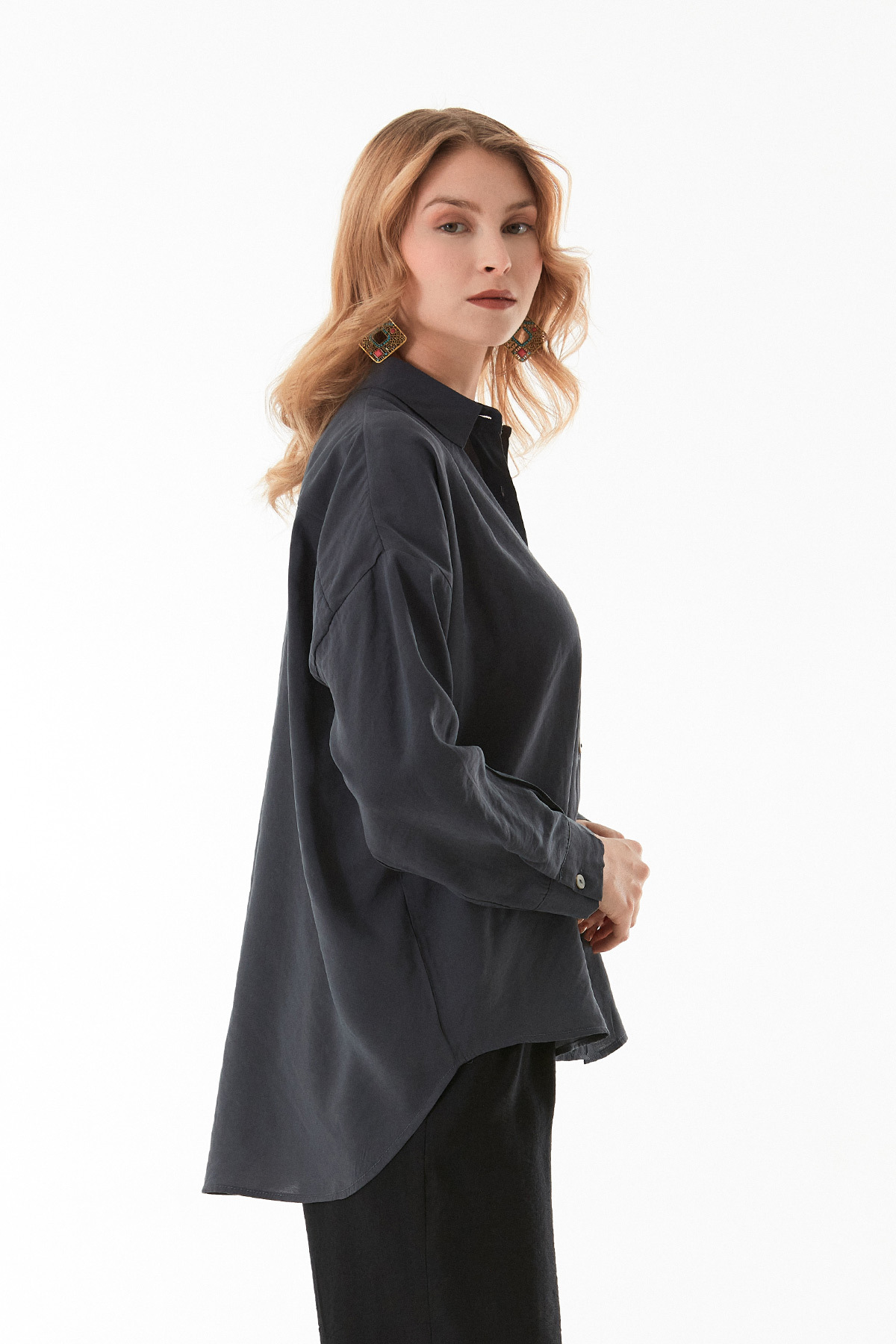 Basic Oversize Arkası Uzun Düğmeli Gömlek Basic Oversize Arkası Uzun Düğmeli Gömlek 25YGB4430128431 XL