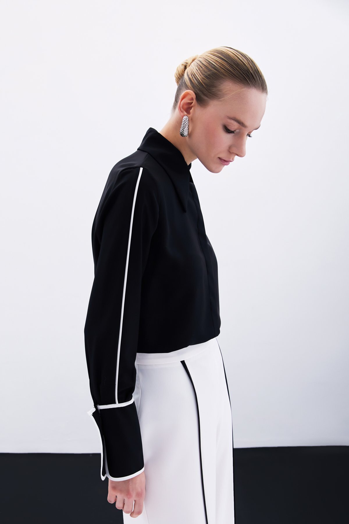 Klasik Manşetli Kontrast Gömlek - Siyah Klasik Manşetli Kontrast Gömlek - Siyah STN139KGO1736 42