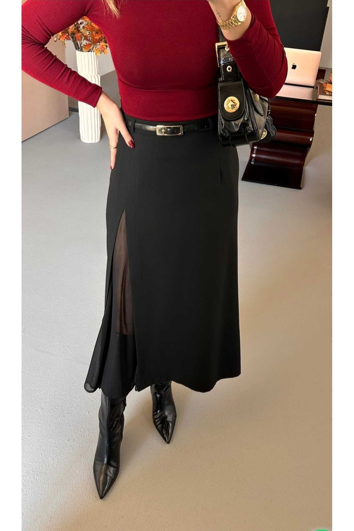 KADIN UZUN KUMAŞ ETEK ŞİFON/TÜL YIRTMAÇ DETAYLI KADIN UZUN KUMAŞ ETEK ŞİFON/TÜL YIRTMAÇ DETAYLI ETKS02154 XL