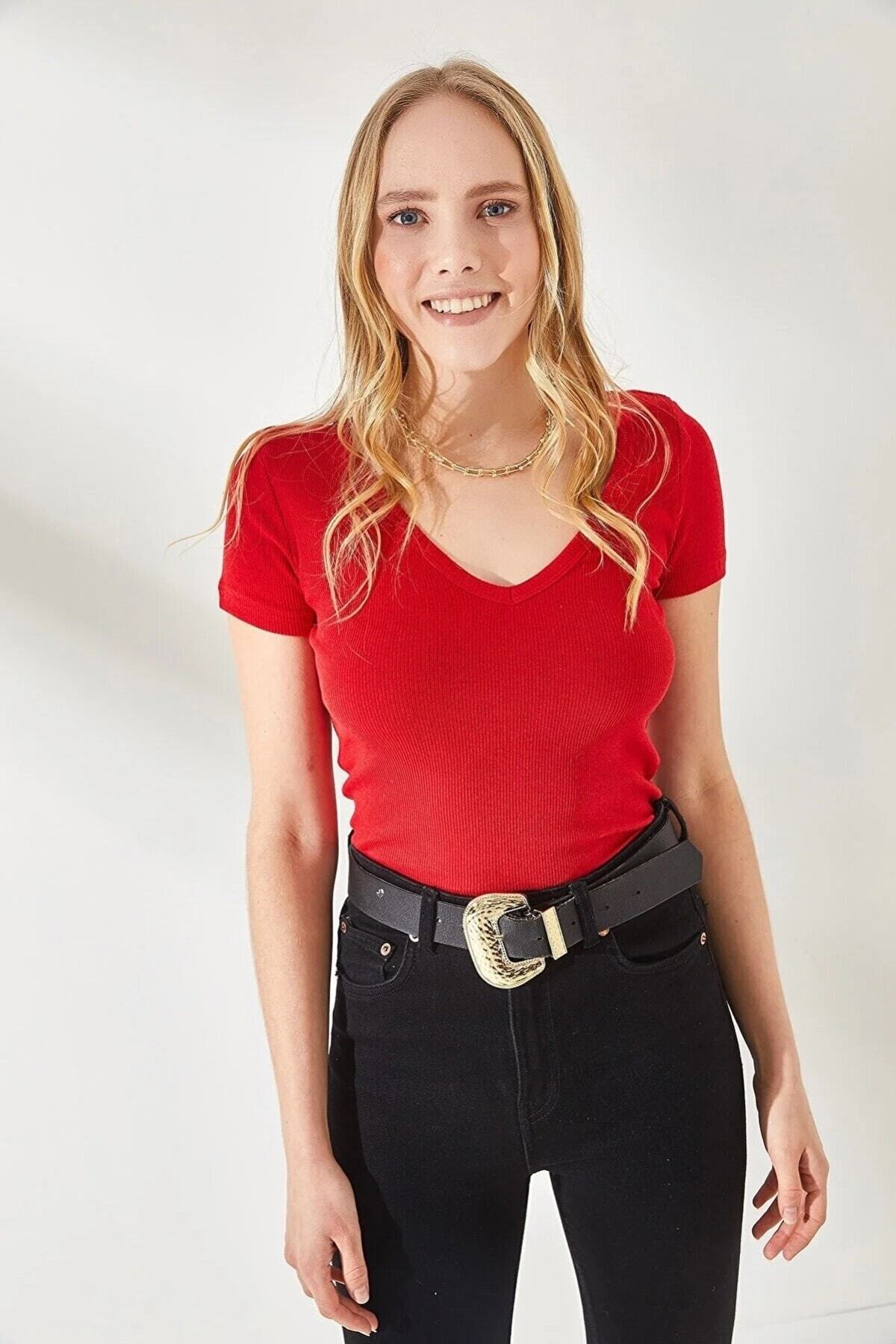 Kısa Kollu V Yaka Yazlık Beyaz Bluz Kısa Kollu V Yaka Yazlık Beyaz Bluz TR-22129 2XL