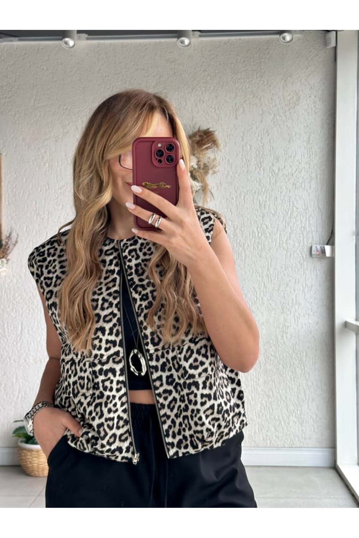 KEYYMOD Kadın Leopar Desenli Kolları Seyyar Yelek & Ceket KEYYMOD Kadın Leopar Desenli Kolları Seyyar Yelek & Ceket 35446 L