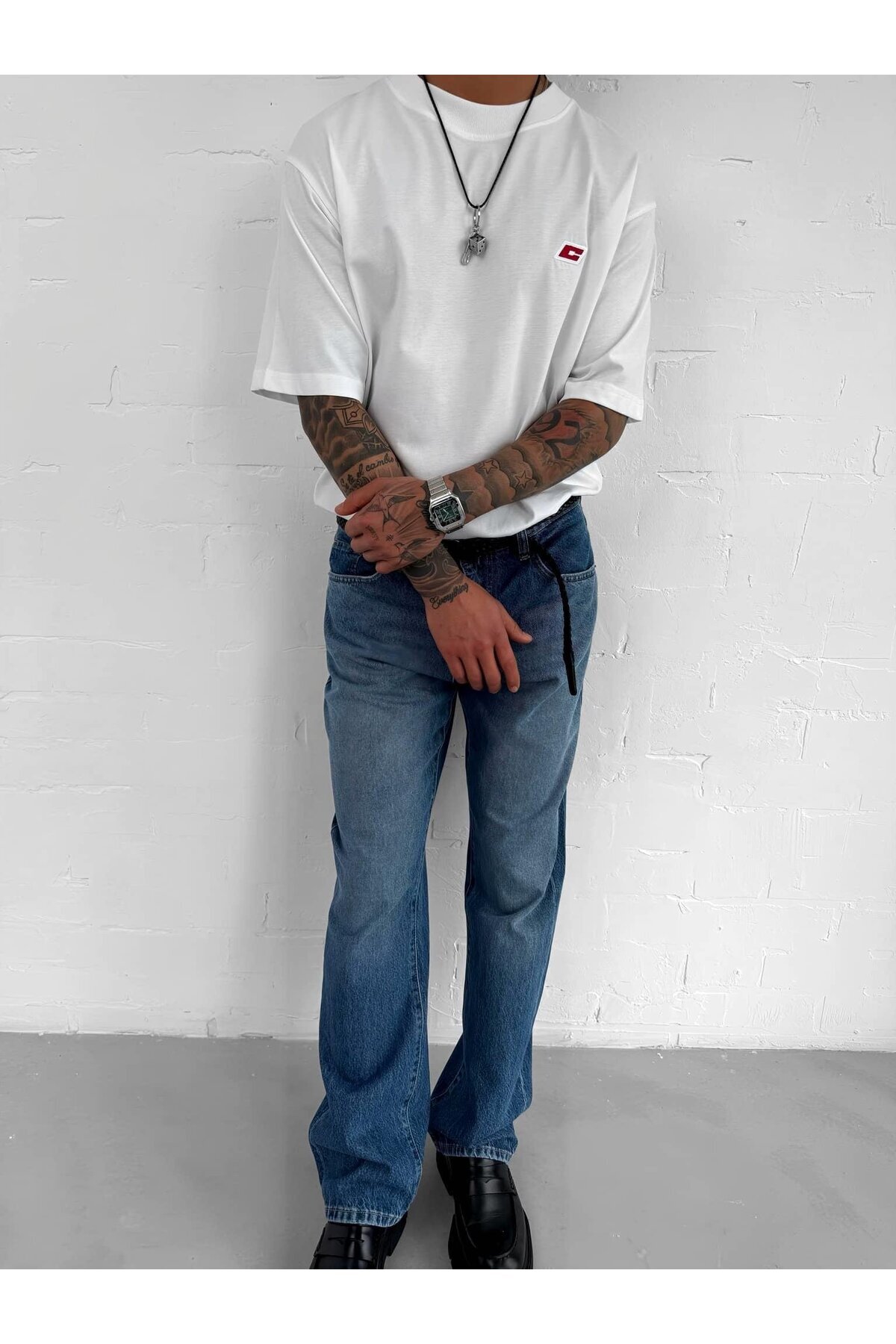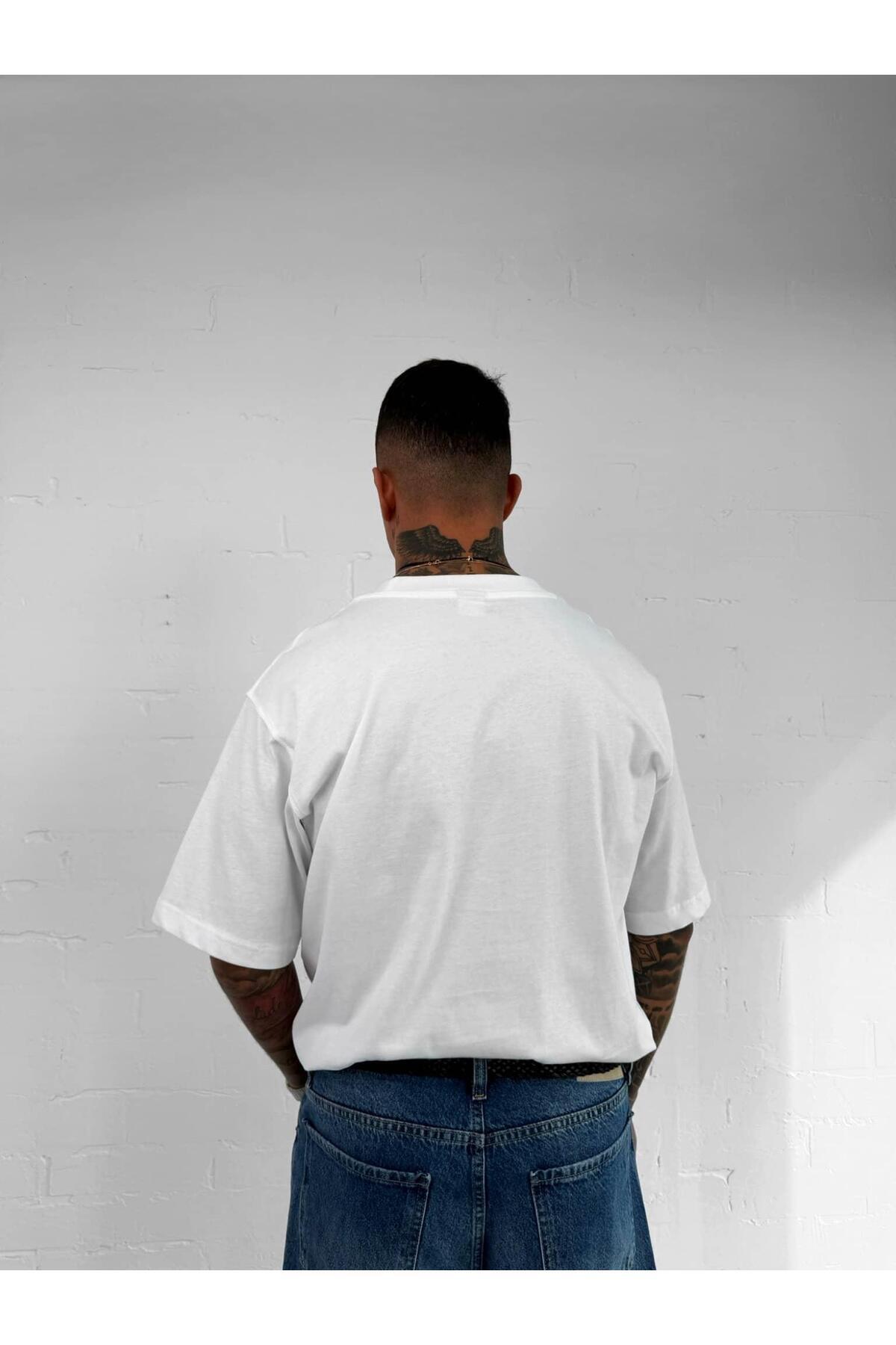 Erkek Oversize Nakışlı T-Shirt Beyaz Erkek Oversize Nakışlı T-Shirt Beyaz TST.0236 XL