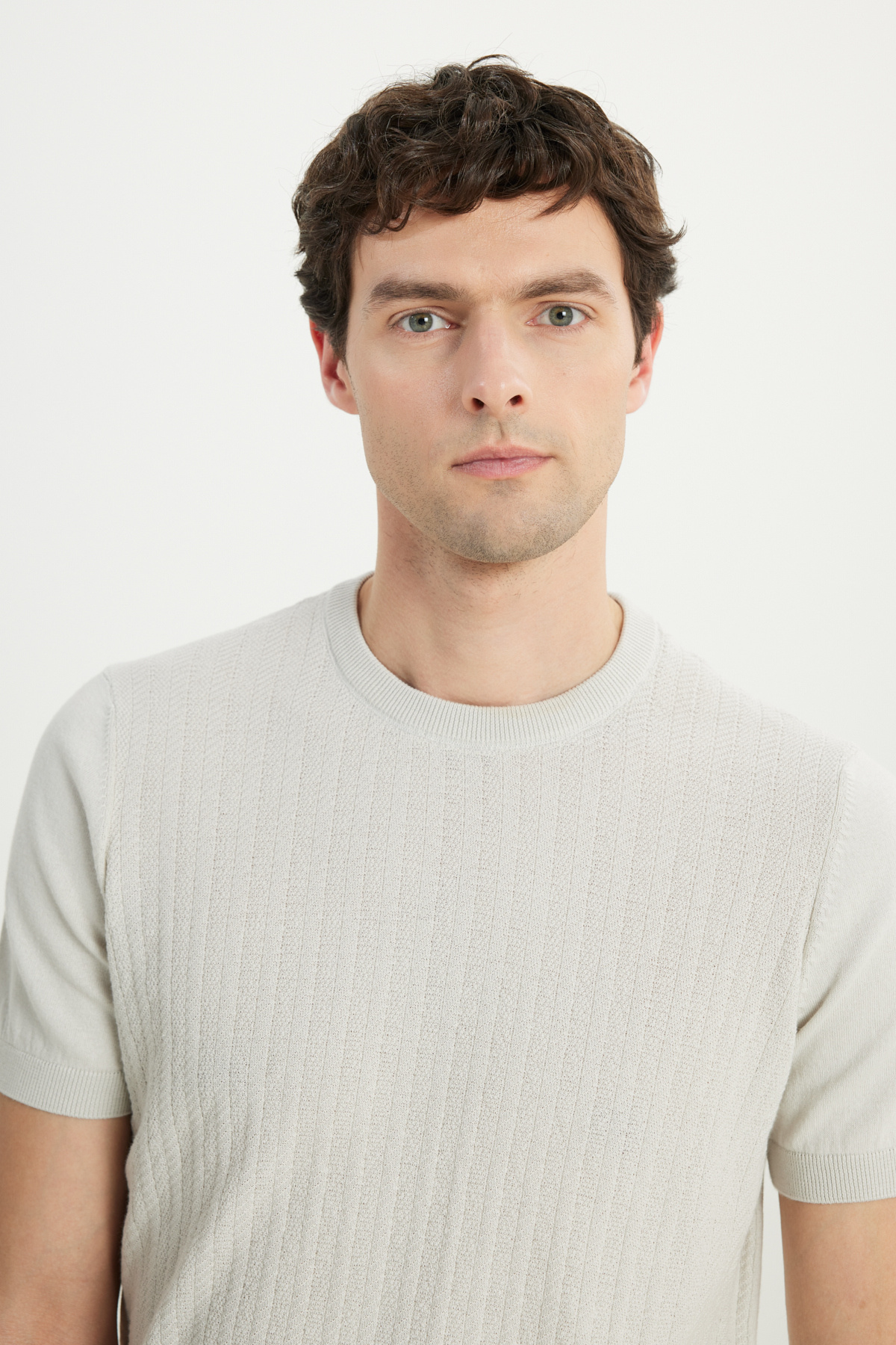 Erkek Açık Gri %100 Pamuk Standart Fit Normal Kesim Bisiklet Yaka Jakarlı Triko Tişört Erkek Açık Gri %100 Pamuk Standart Fit Normal Kesim Bisiklet Yaka Jakarlı Triko Tişört ETE072252041 2XL