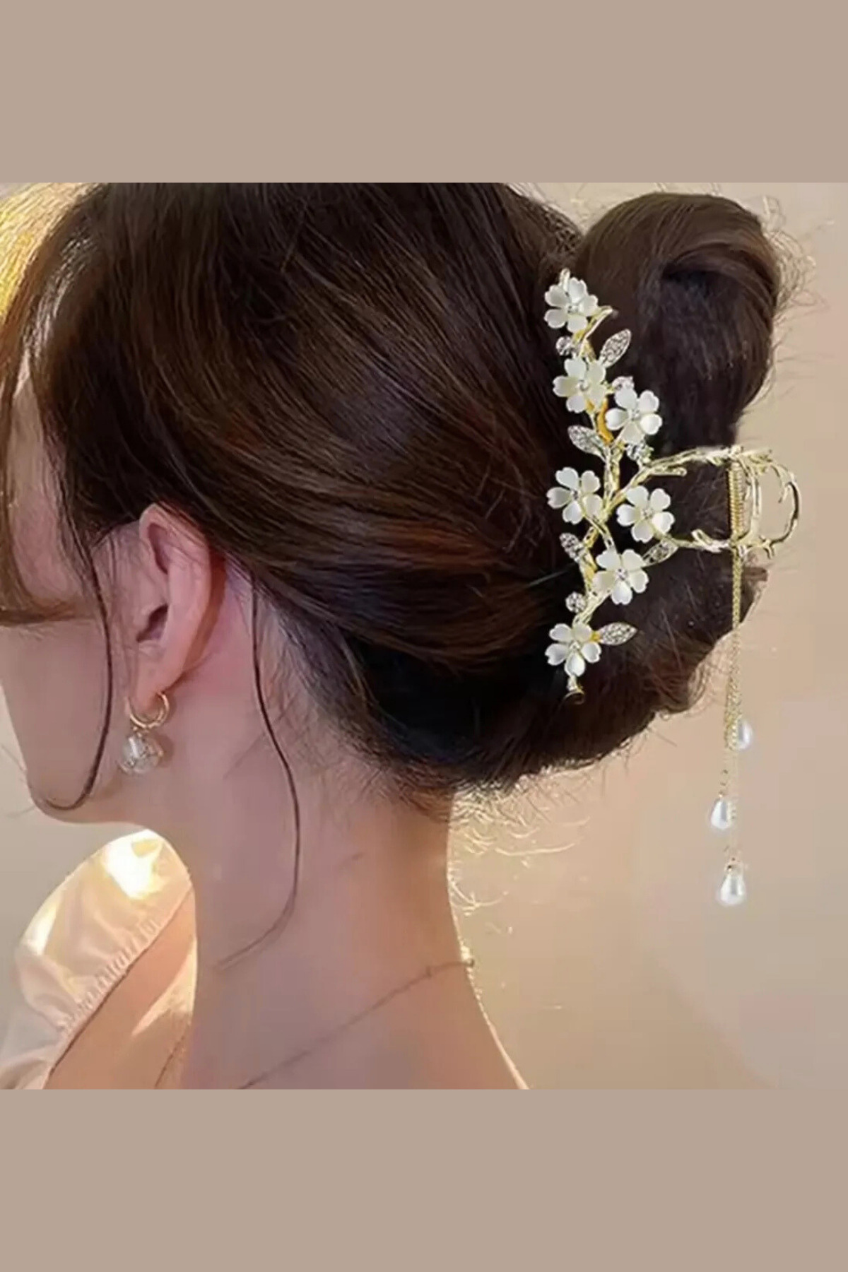 Sallantılı Sedef Çiçekli İncili Taşlı Gold Metal Kadın Mandal Toka 11cm - Mandallı Saç Topuz Tokası Sallantılı Sedef Çiçekli İncili Taşlı Gold Metal Kadın Mandal Toka 11cm - Mandallı Saç Topuz Tokası toka_0187 تک سایز