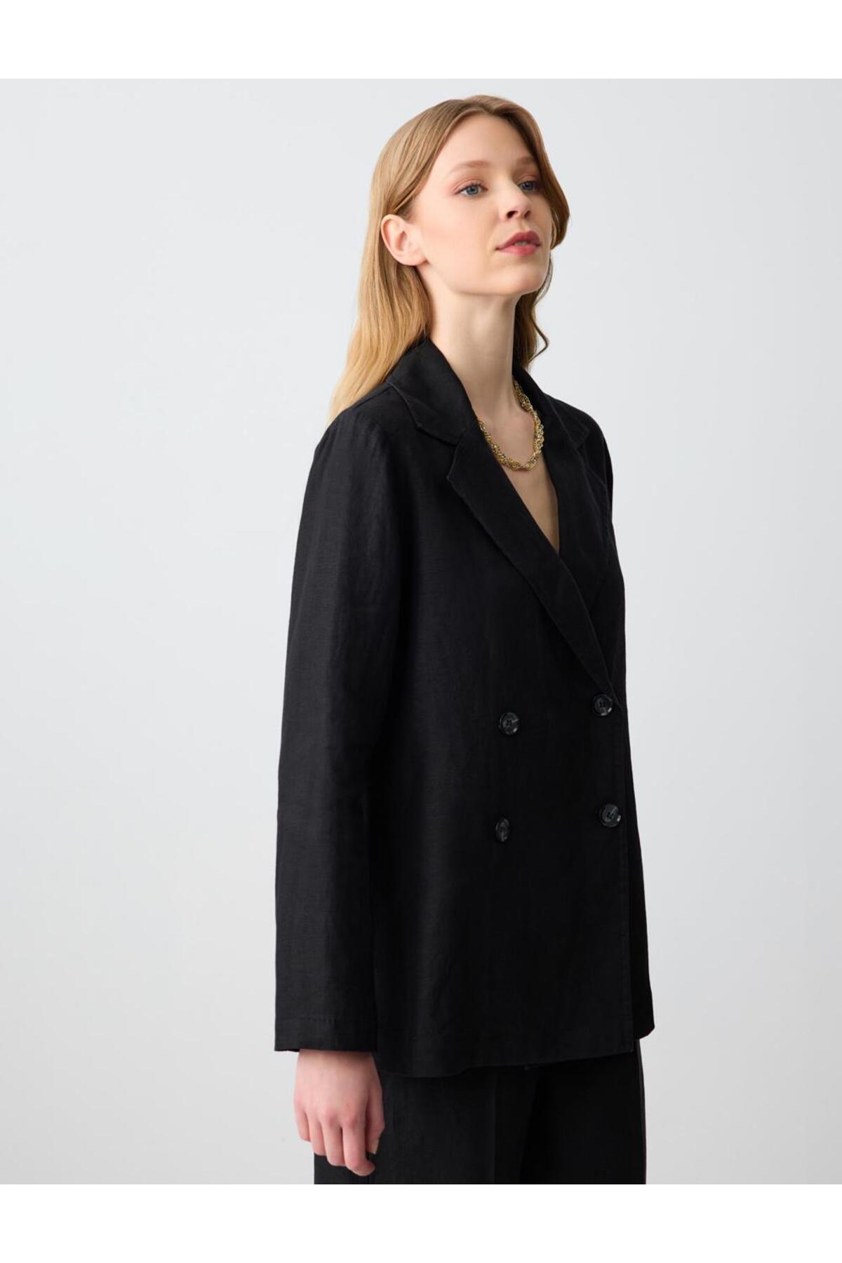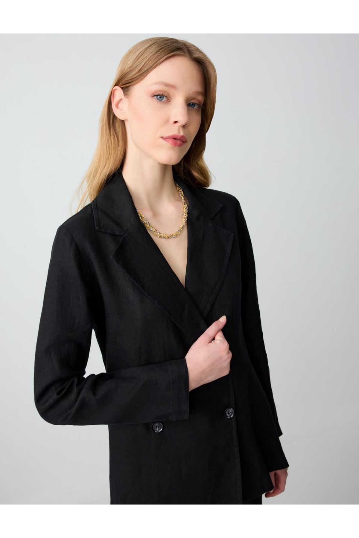 Siyah %100 Keten Düz Kesim Gömlek Yaka Uzun Kollu Dokuma Ceket Siyah %100 Keten Düz Kesim Gömlek Yaka Uzun Kollu Dokuma Ceket 5SW052585 2XL