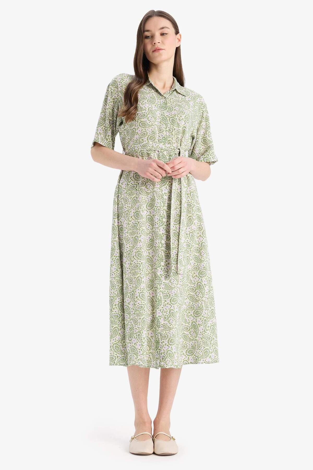 A Kesim Gömlek Yaka Desenli Kuşaklı Kısa Kollu Midi Elbise D4575AX25SP A Kesim Gömlek Yaka Desenli Kuşaklı Kısa Kollu Midi Elbise D4575AX25SP 46
