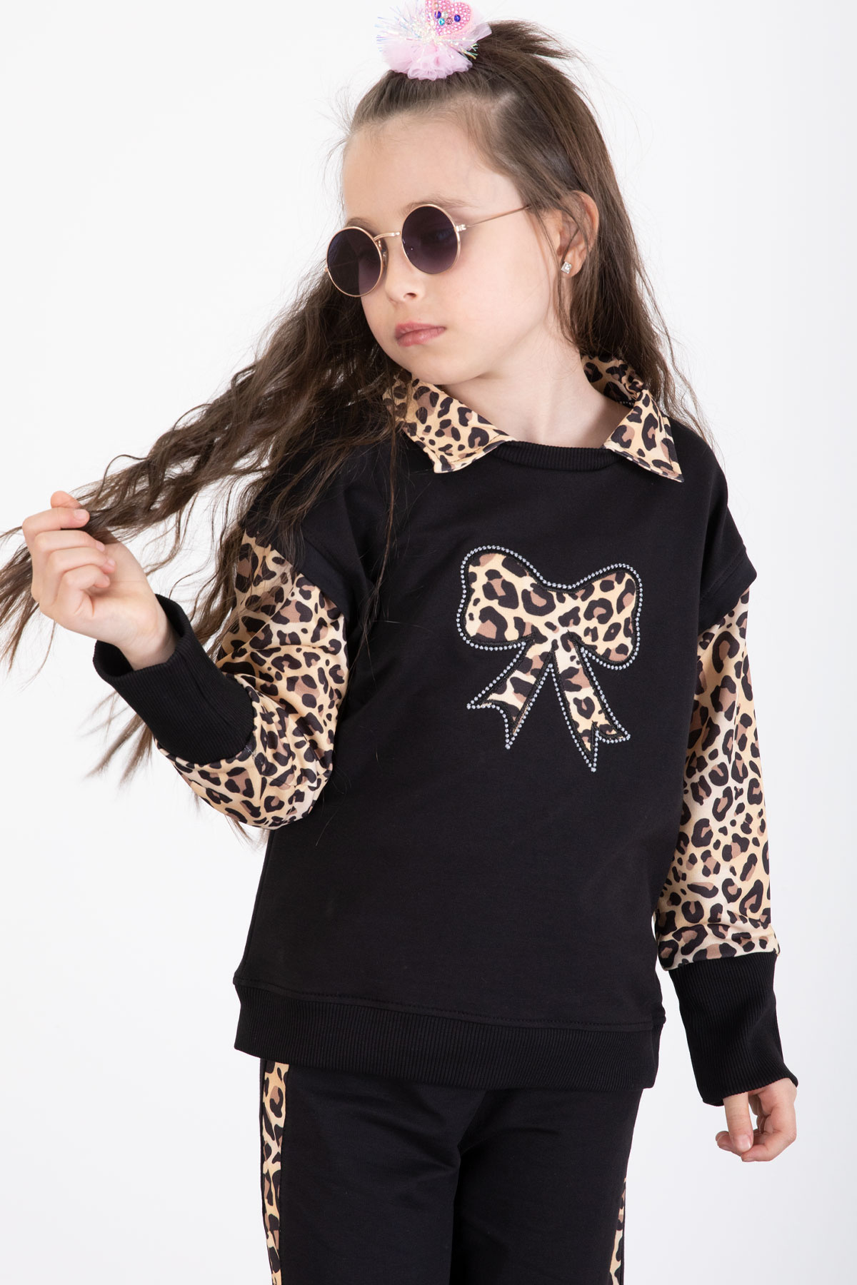 Siyah Leopar Şerit Detaylı Fiyonk Desenli Kız Çocuk Alt Üst 2li Takım 20525 Siyah Leopar Şerit Detaylı Fiyonk Desenli Kız Çocuk Alt Üst 2li Takım 20525 GRPCM00020525 10-11 Yaş