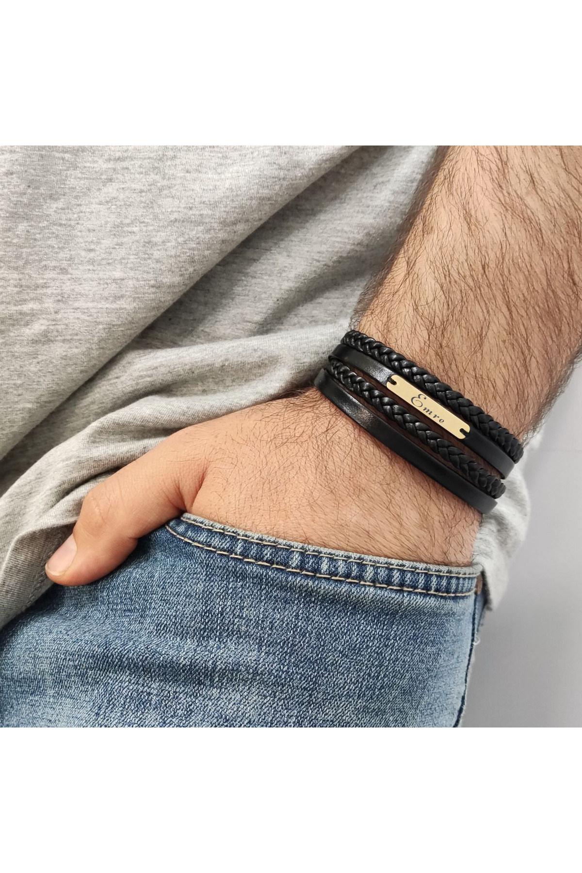 14 Ayar Plakalı Altın Dikdörtgen Motifli Erkeklere Özel Ve Hakiki Deri Isim Bilekliği-354isim-siyah 14 Ayar Plakalı Altın Dikdörtgen Motifli Erkeklere Özel Ve Hakiki Deri Isim Bilekliği-354isim-siyah 354-derkardort-flum-MO1 Standart